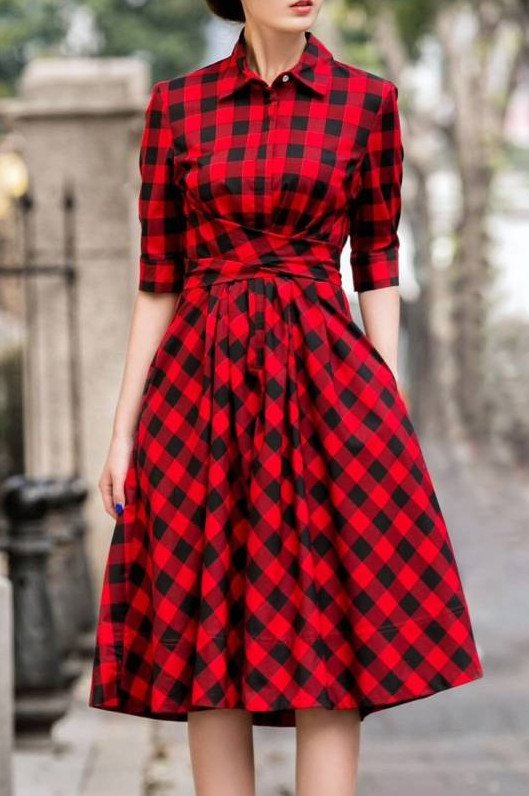 Платье в клетку в стиле Одри Хепберн.