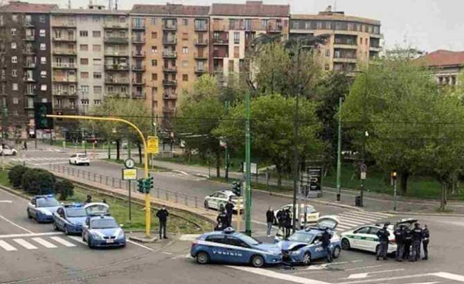 36. Две полицейские машины умудрились врезаться друг в друга в Милане, где дороги пустуют из-за карантина