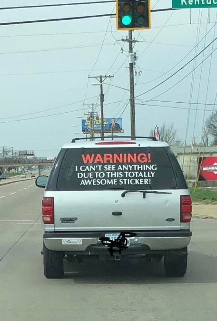 22. "Внимание!Я ничего не вижу из-за данной офигенски крутой наклейки!"
