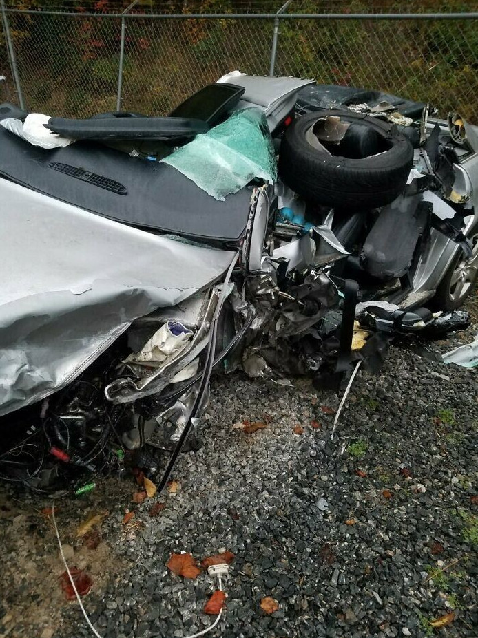 30. "Я был в данной машине и выжил. Некий кретин заснул за рулем и вылетел на мою полосу на скорости 190 км/ч. Это месиво было Ауди A4 2007 года"