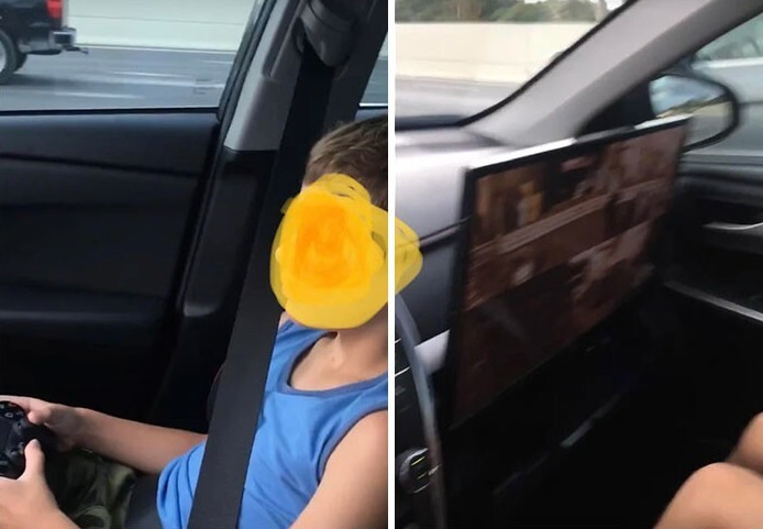 32. Отец года установил в машине PS4. Монитор закрывает подушечки сохранности