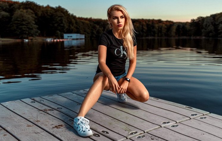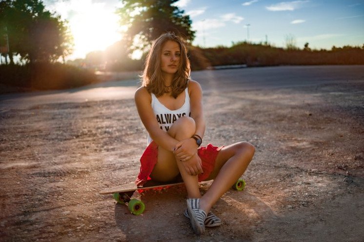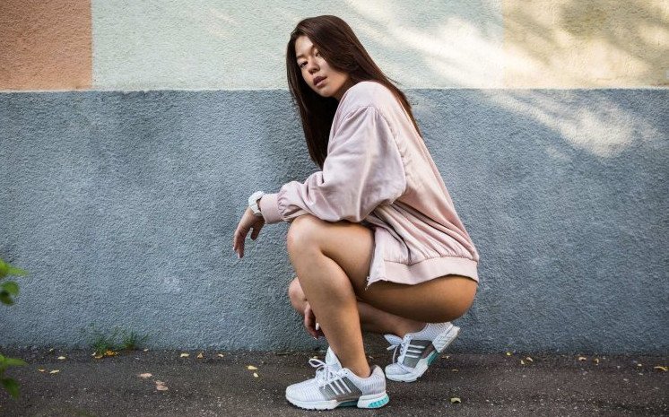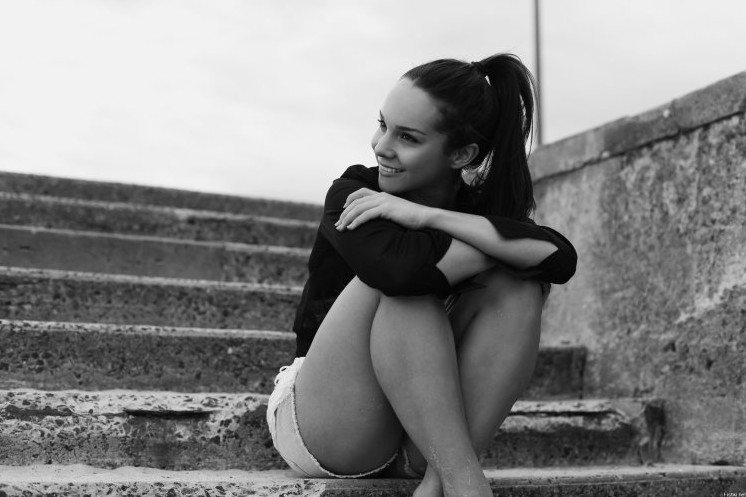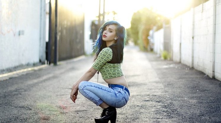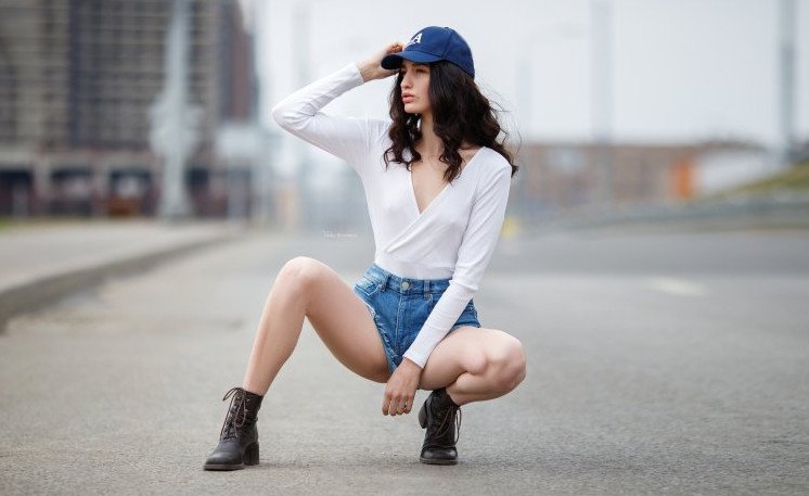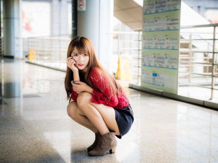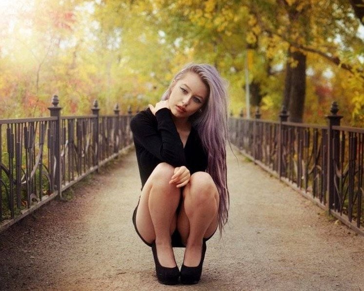Девушка на корточках.