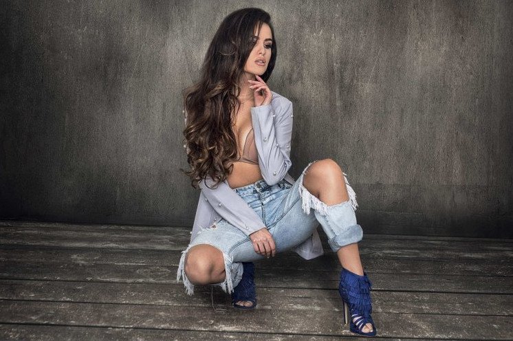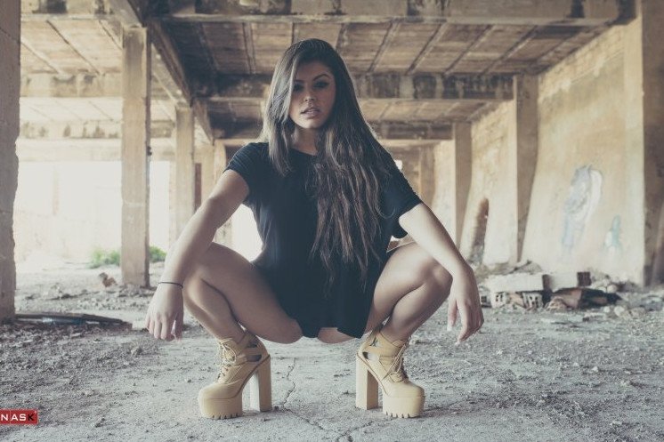 Natalie 007 на корточках.