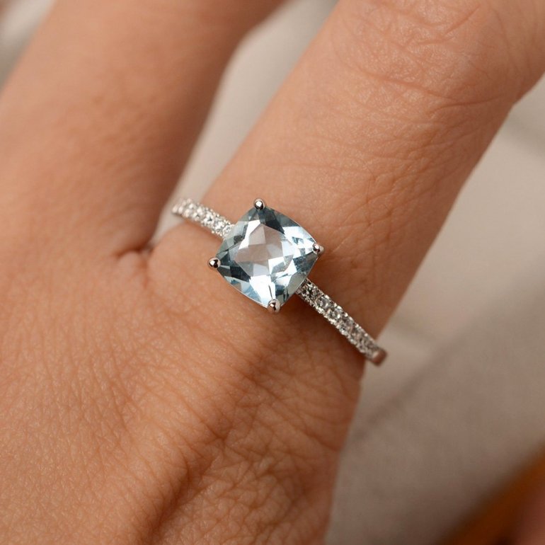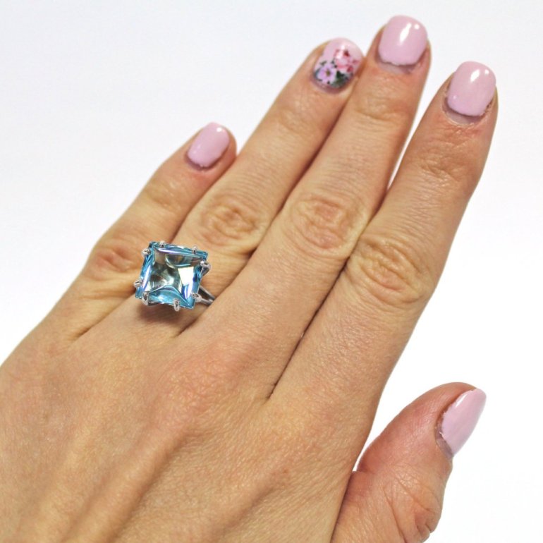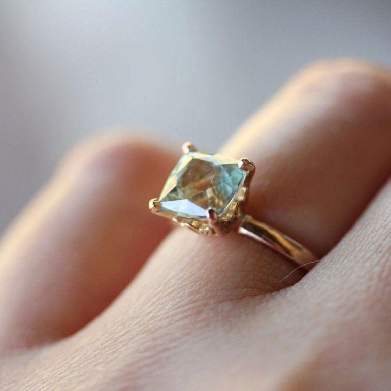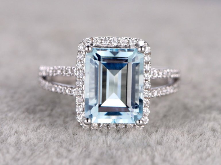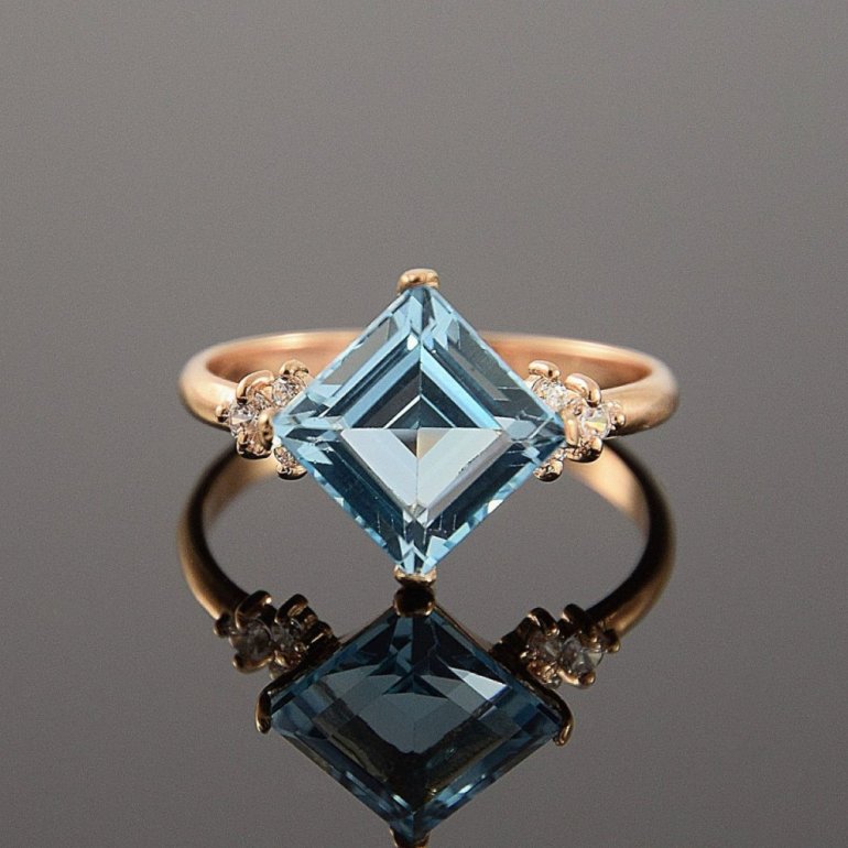 Аквамарин сине зеленоватый золотое кольцо Диамант.