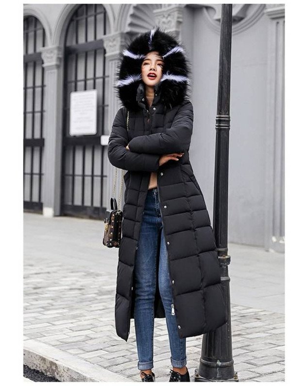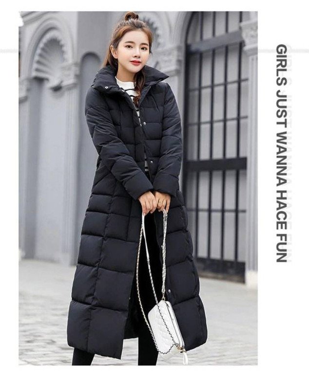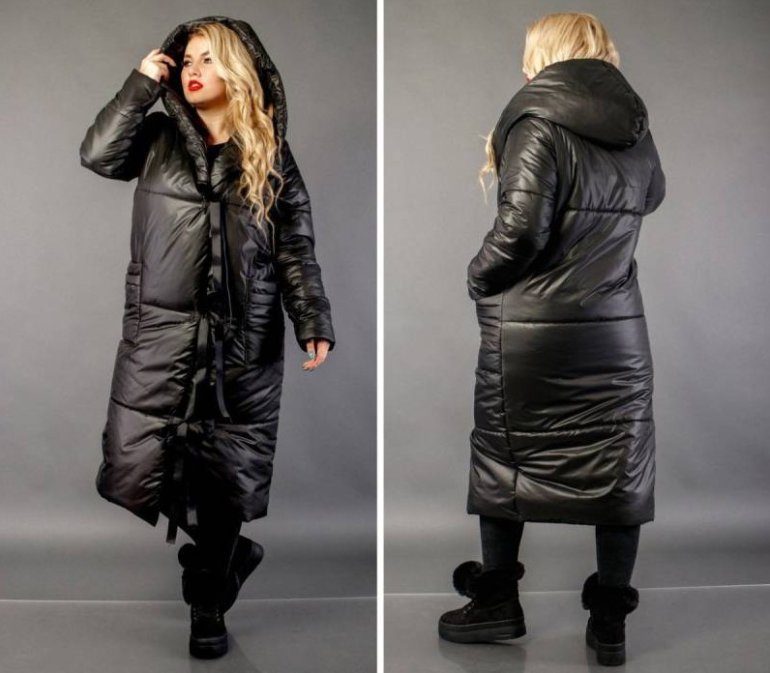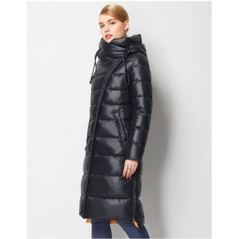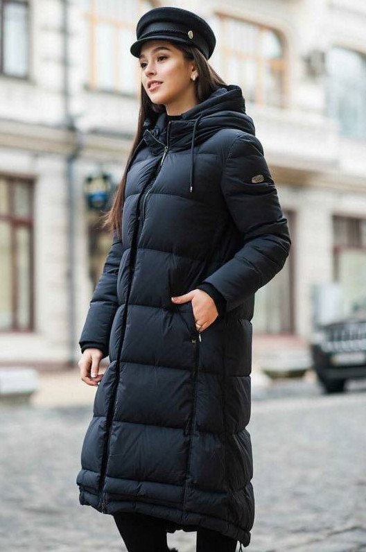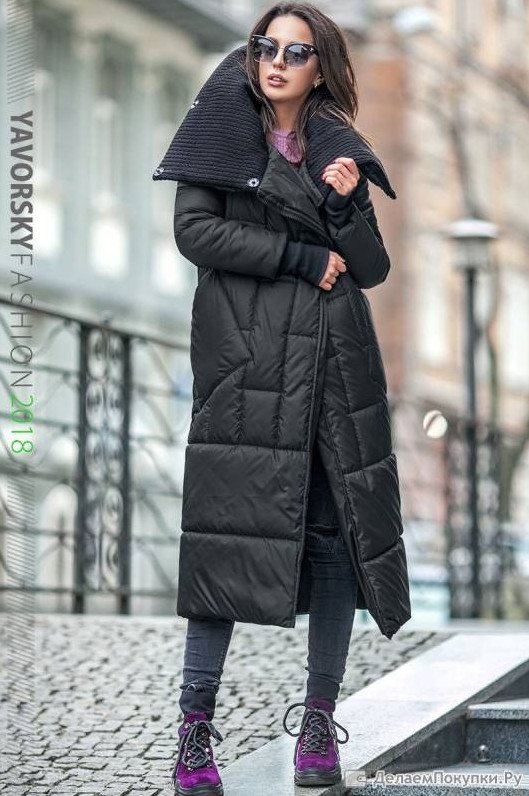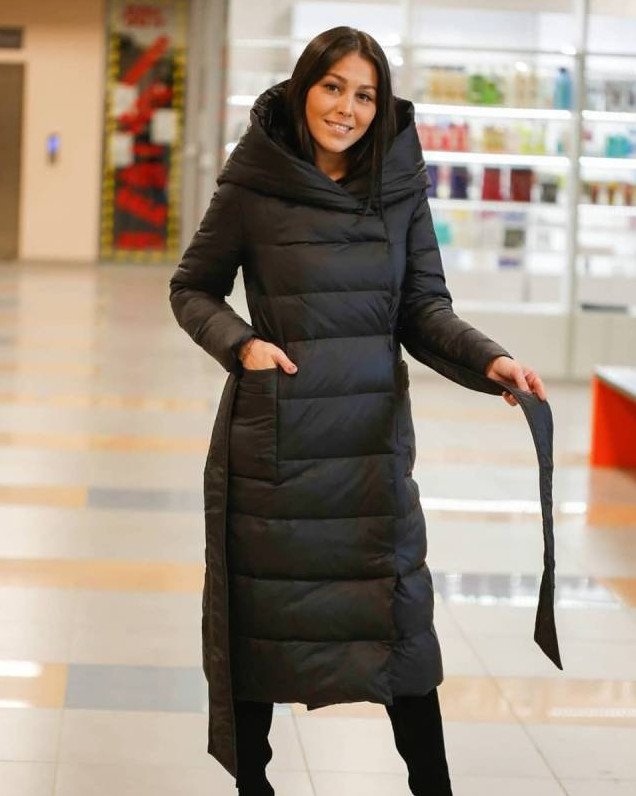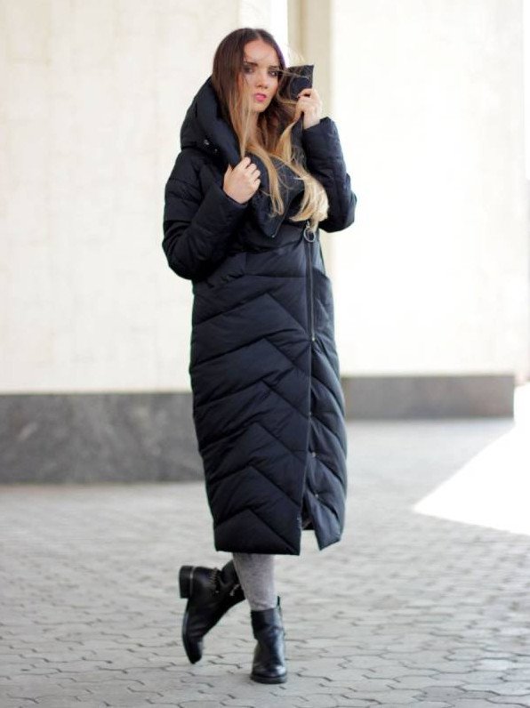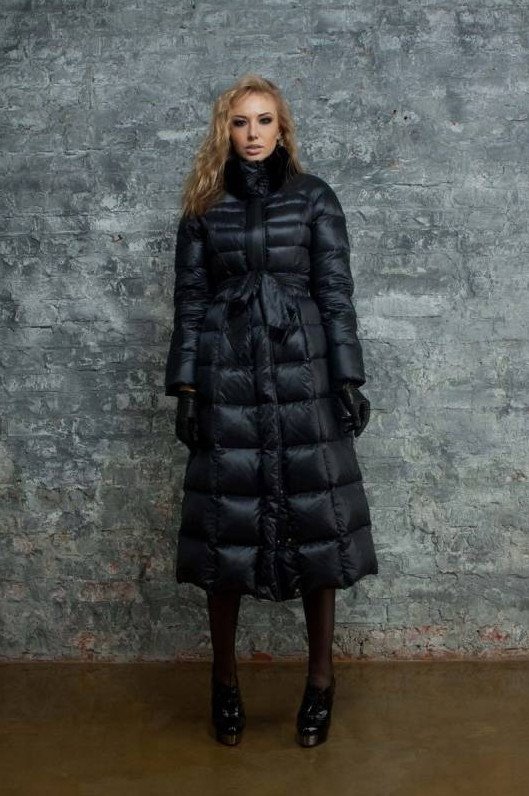 Зарина пуховик дамский длиннющий чёрный.