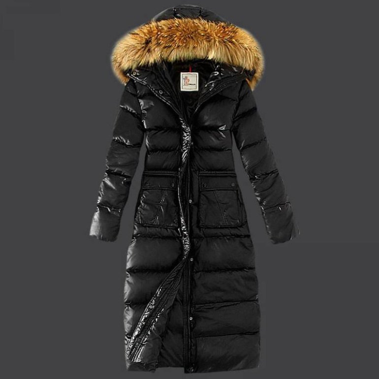 Длиннющий темный пуховик монклер.