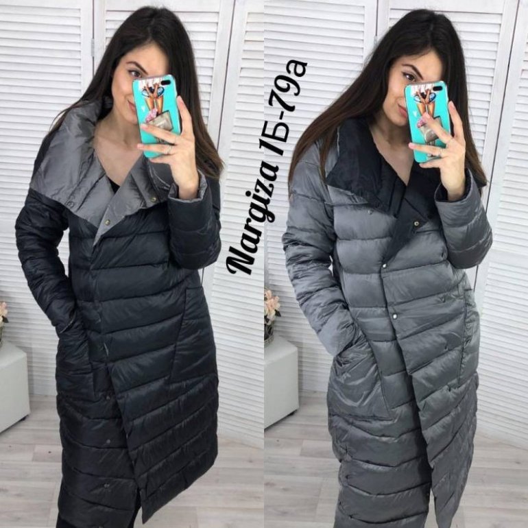 Длинноватое стеганое пальто женское.