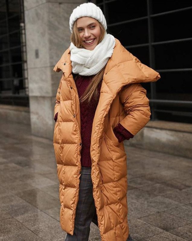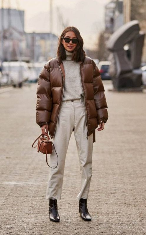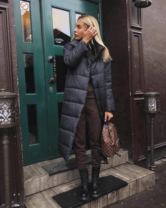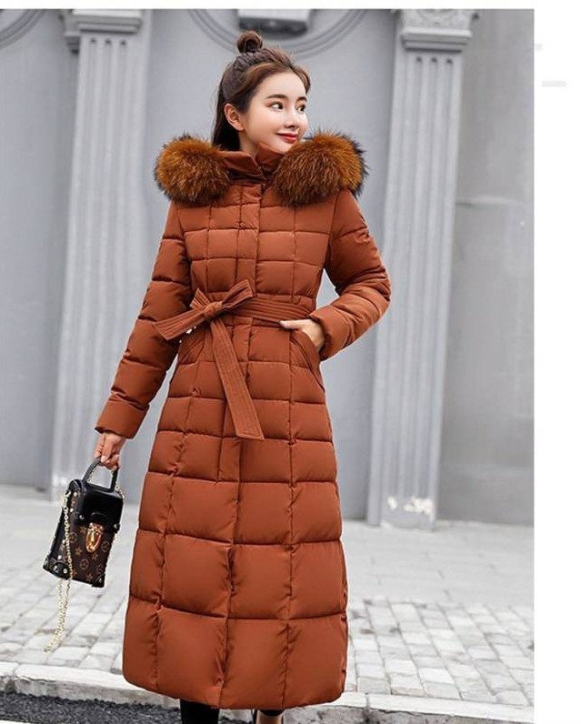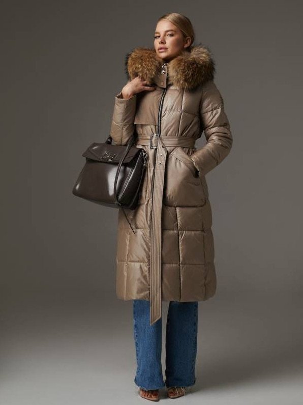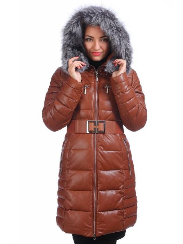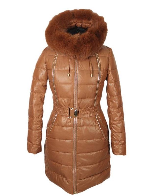 Кожаный стеганый длиннющий карий пуховик дамский ANNIMILAN С лисой 2010.
