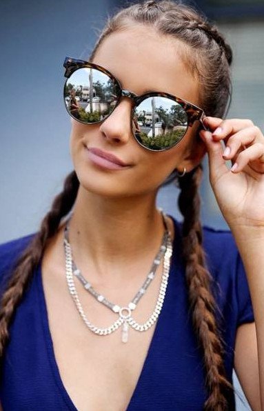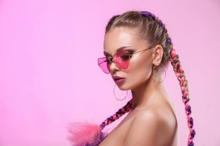 Красивые восхитительные женщины в очках с косичками.