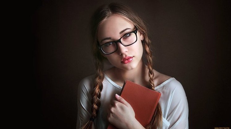 Девушка с косой и в очках.