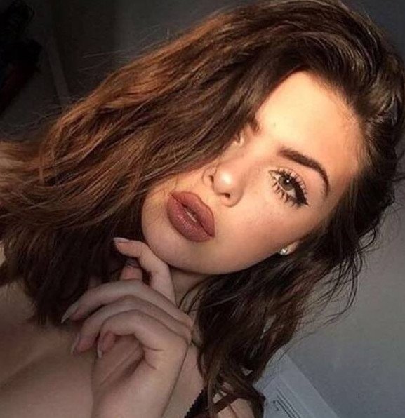 Шатенка с пухлыми губами.