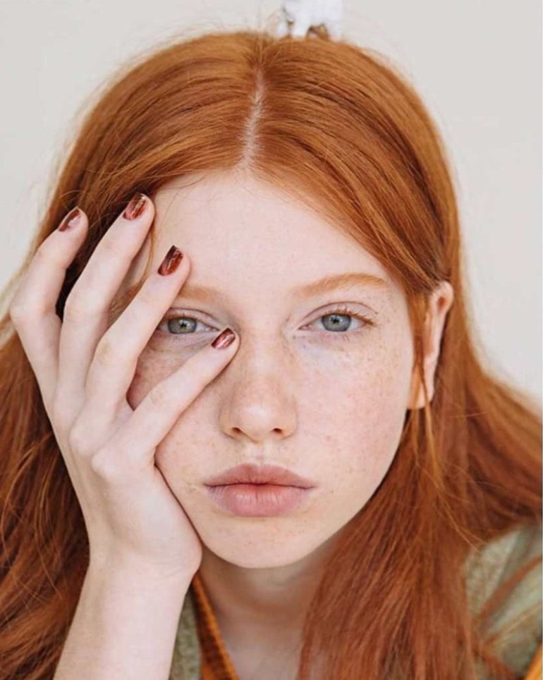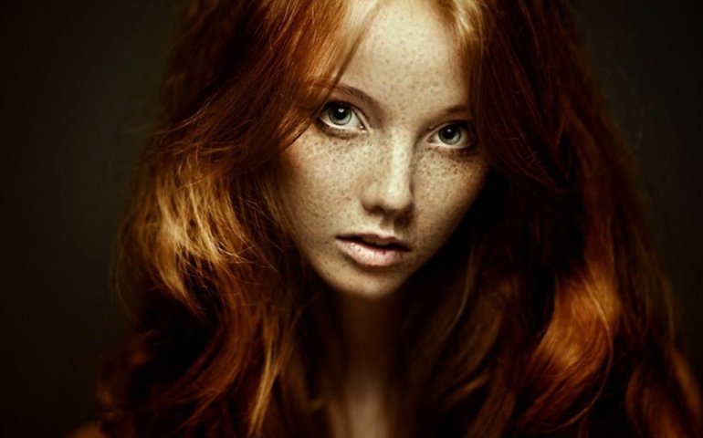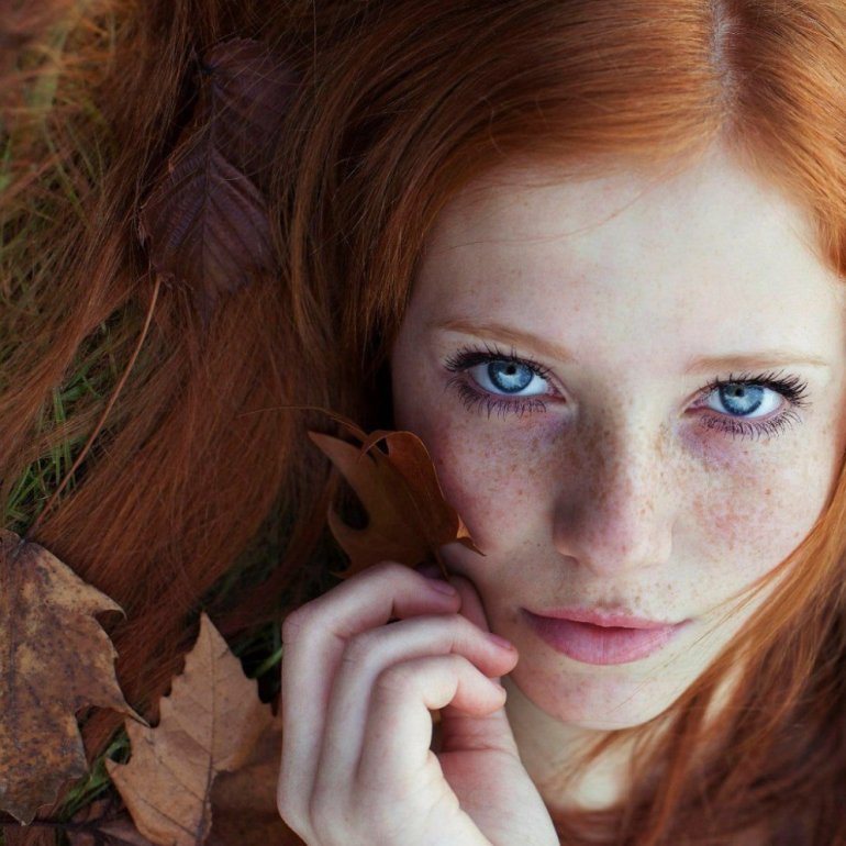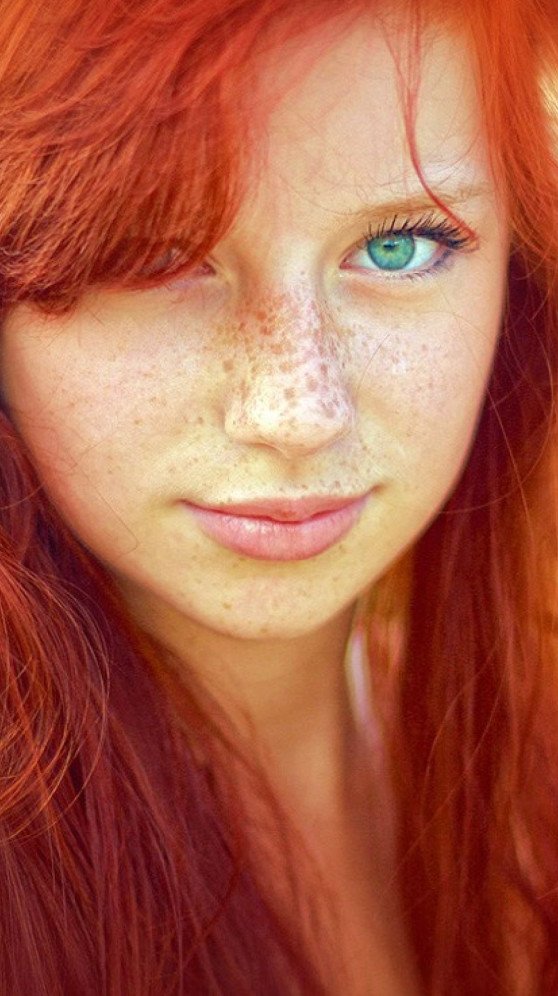 Рыжие и каштановые девушки с веснушками и сероватыми очами.