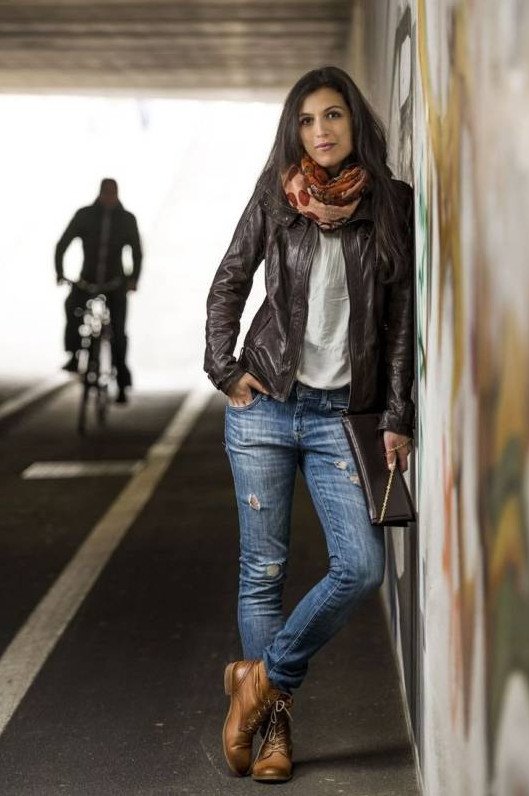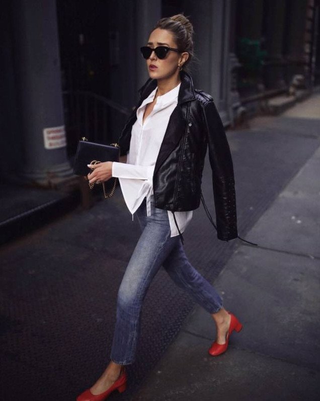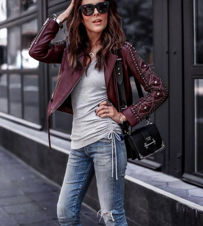 Стиль с красной кожанкой.