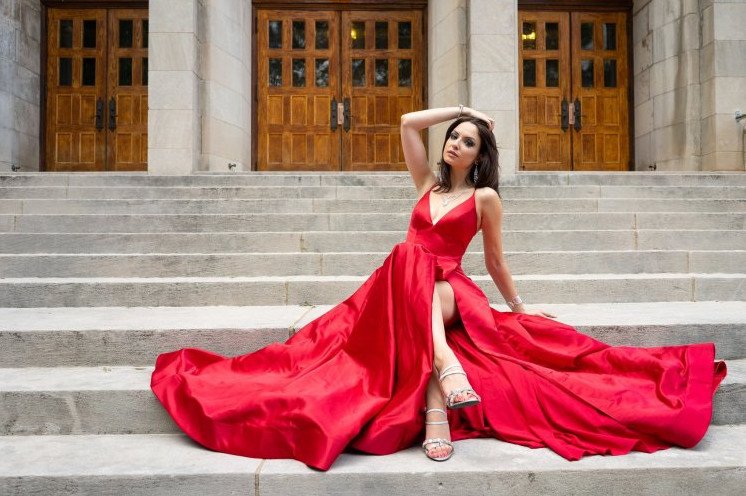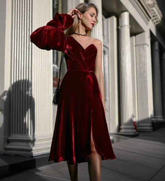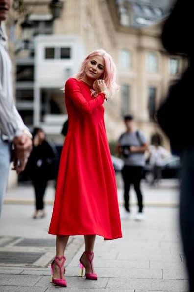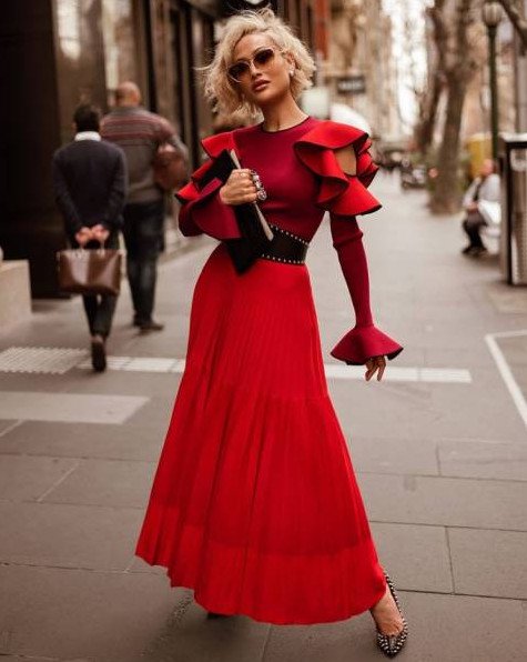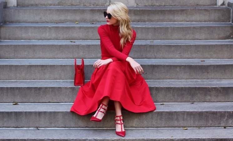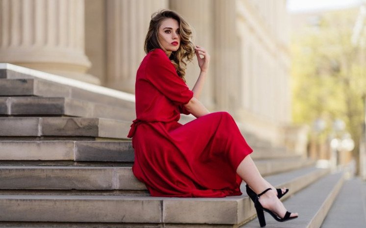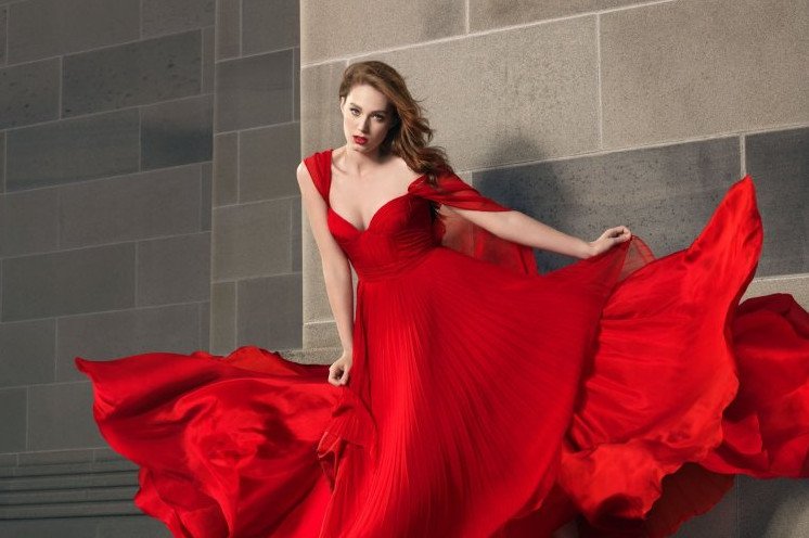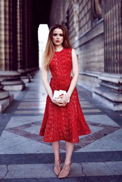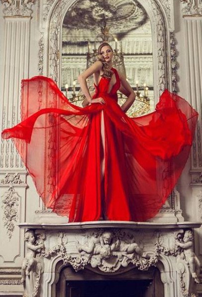 Образ с красным прекрасном платьем.