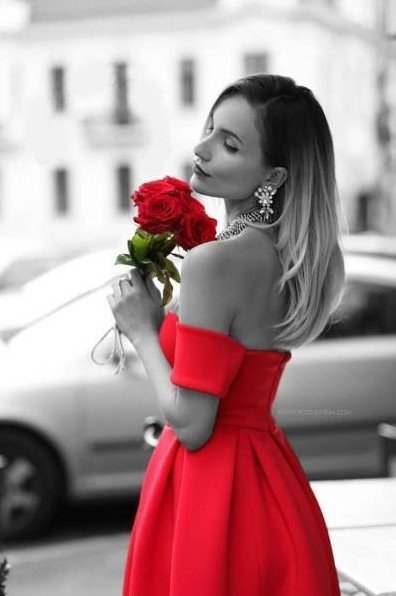 Девушка в Красном прекрасное платье.