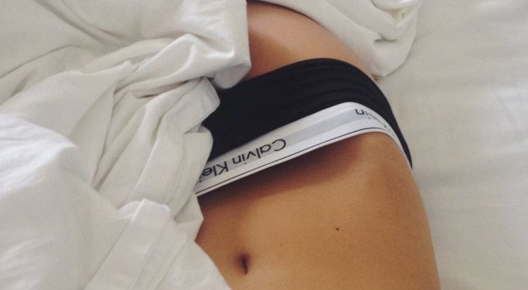 Восхитительные женщины в белье Кельвин Кляйн на кровати.