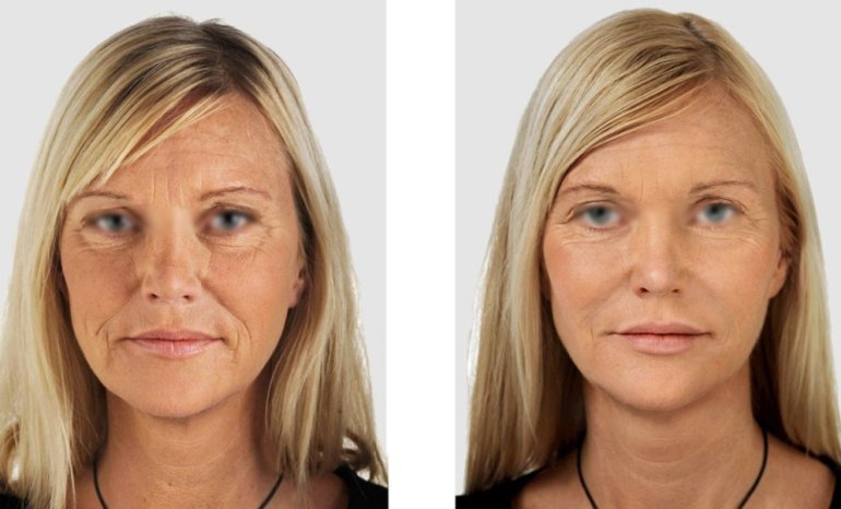 Морщины до после.
