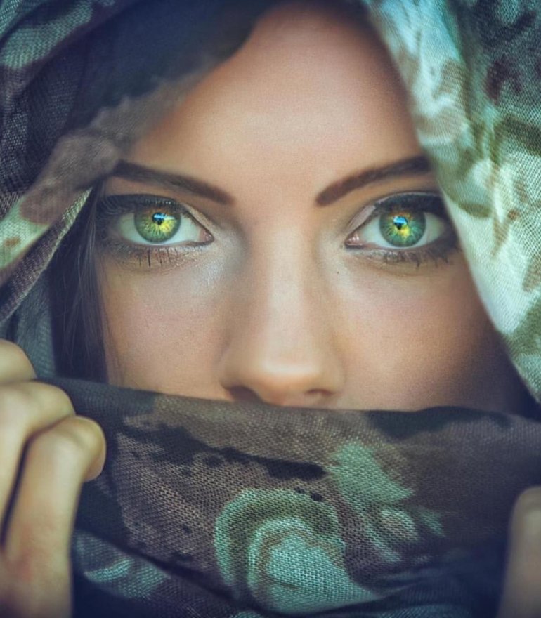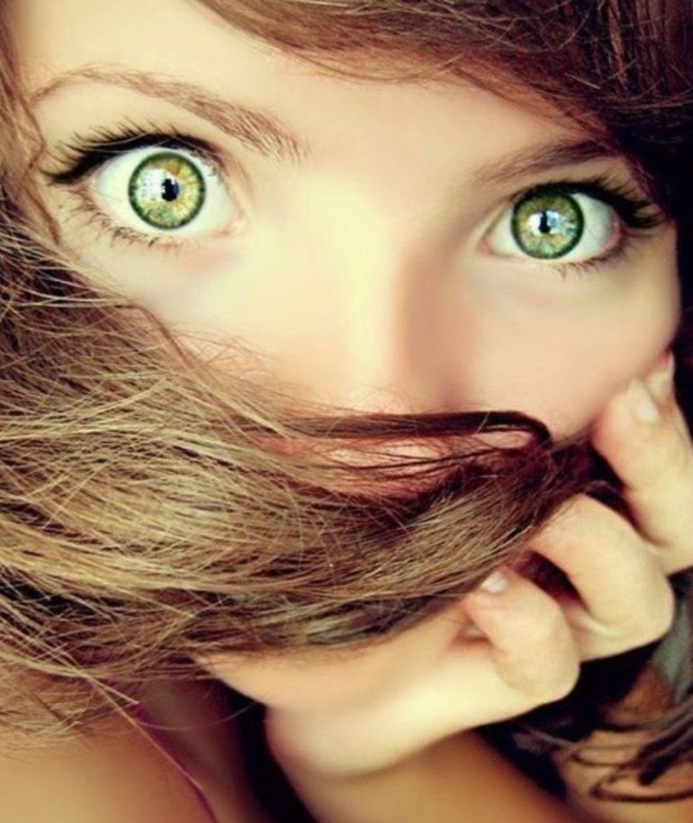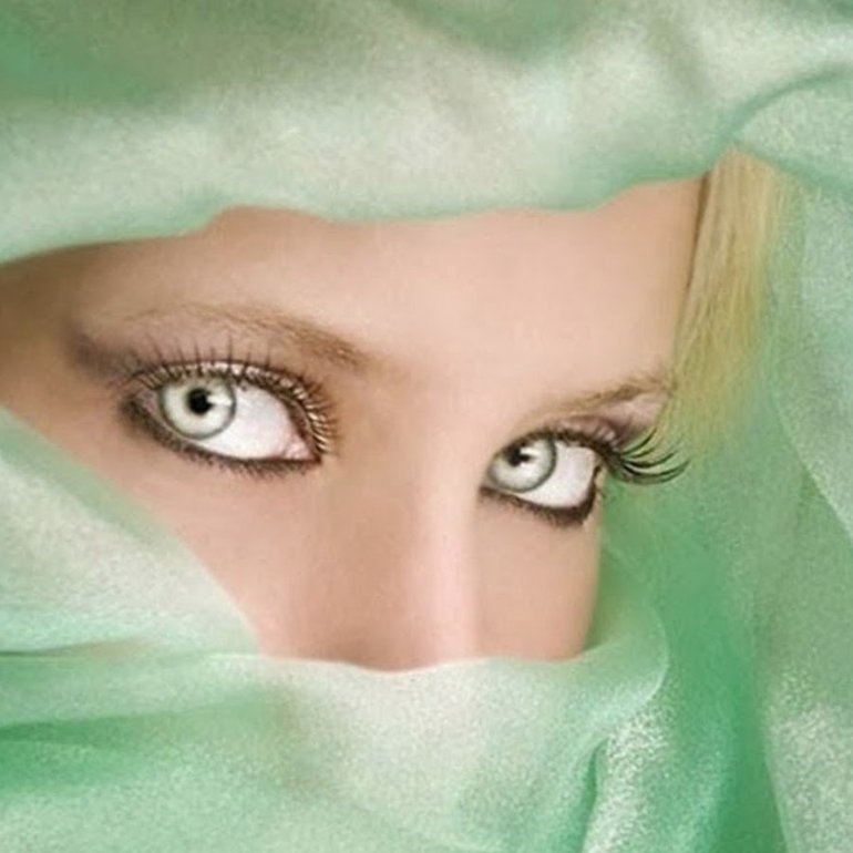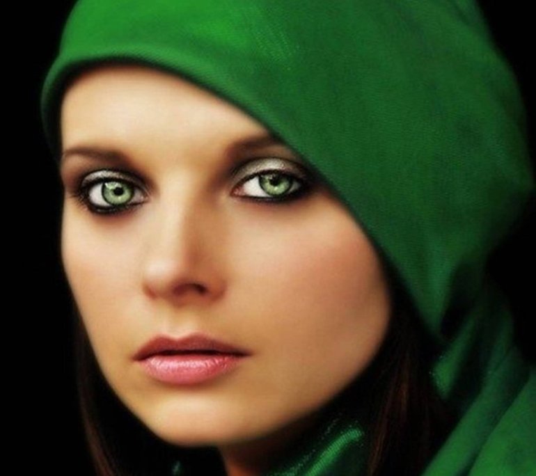 Зелёные глаза у красивых женщин.