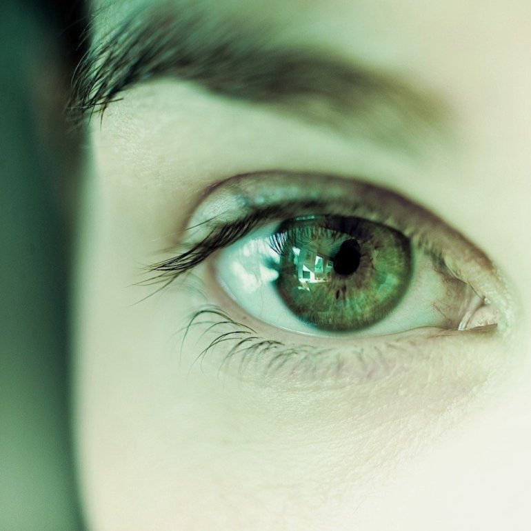 Зеленоватые глаза на черном фоне.