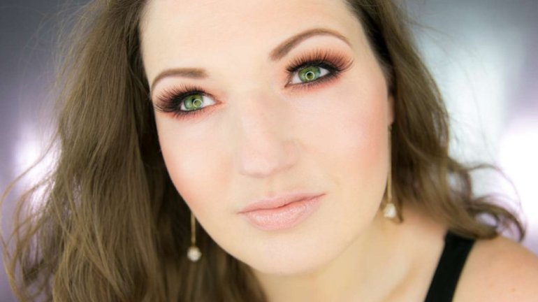Зеленоватые натуральные глаза.