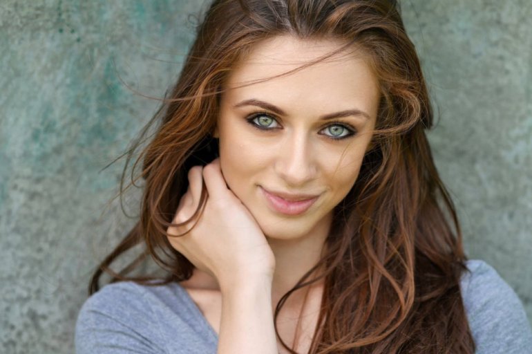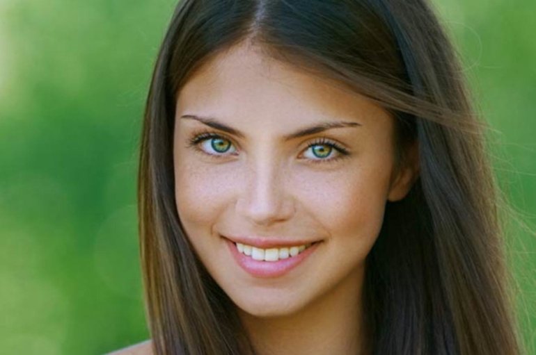 Шатенка с зеленоватыми очами.