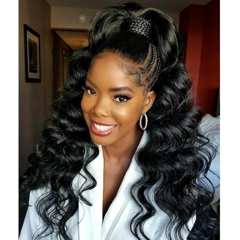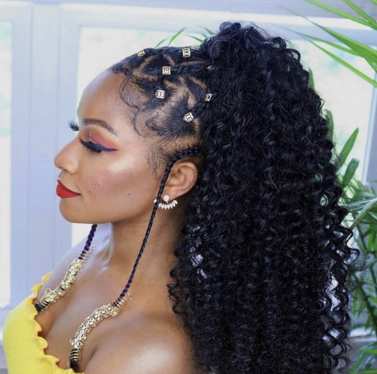 Брейды в хвост с кудрями.