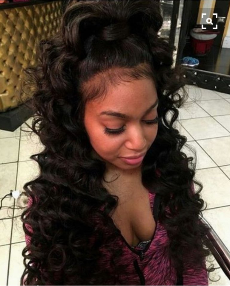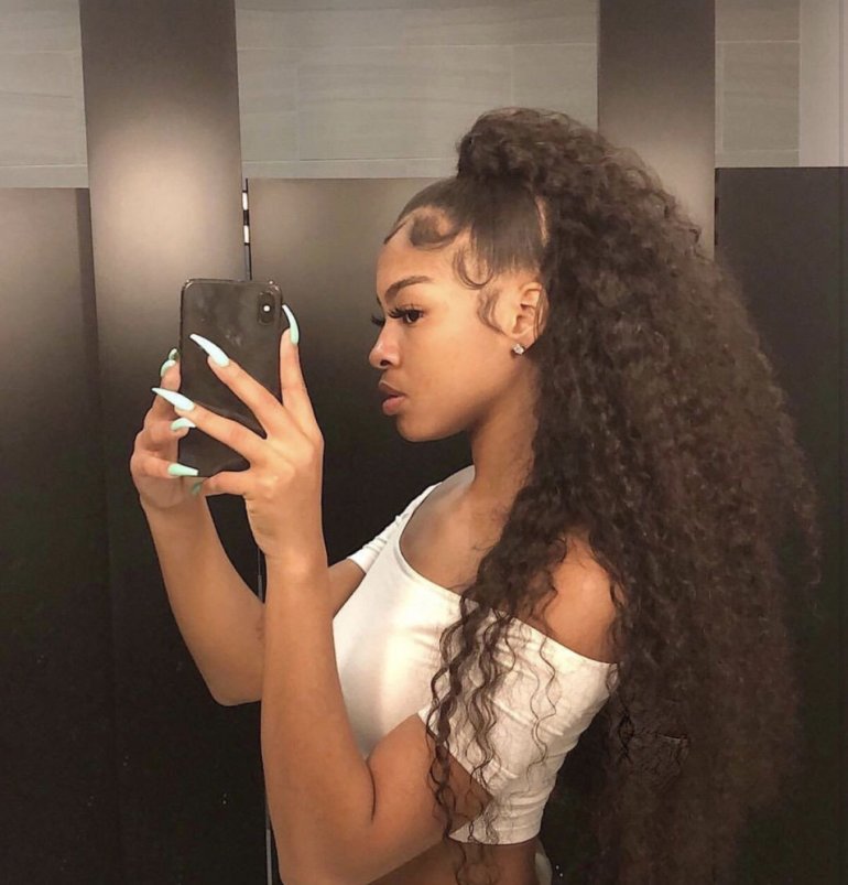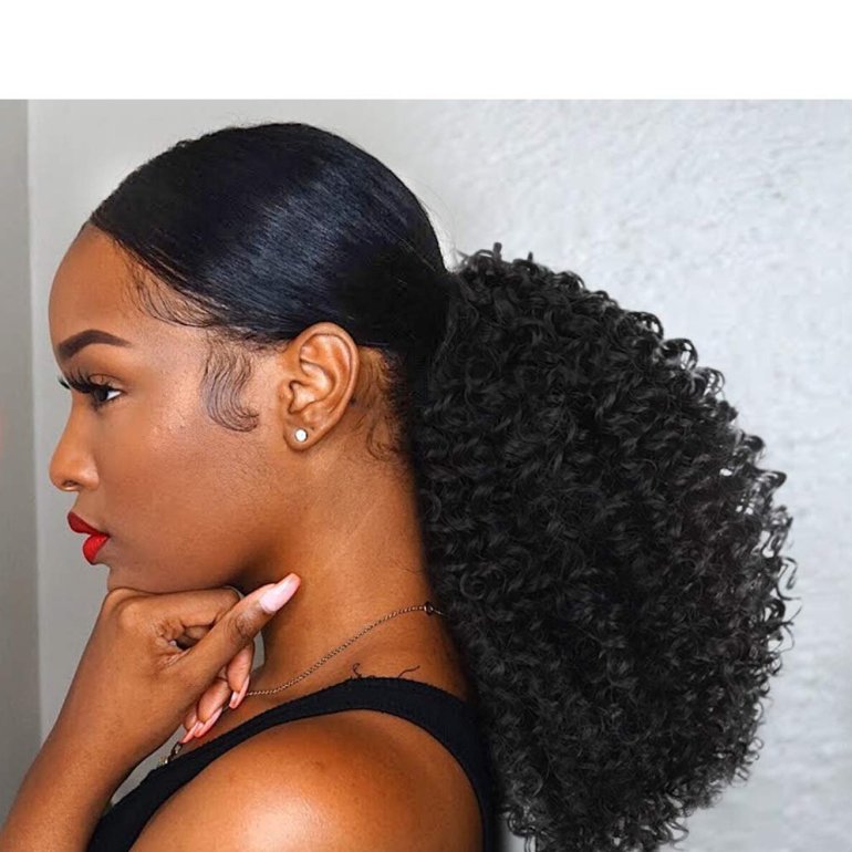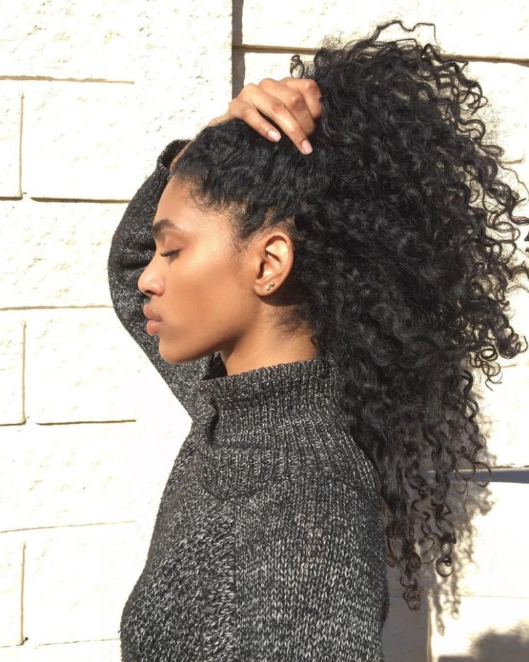 Афро кудри собранные в хвост.