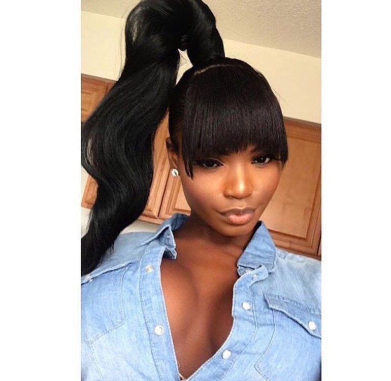 Смуглокожая девушка красавица с конским хвостом.