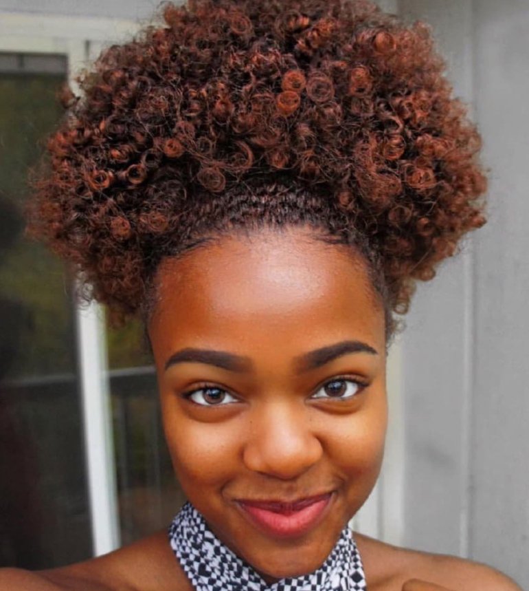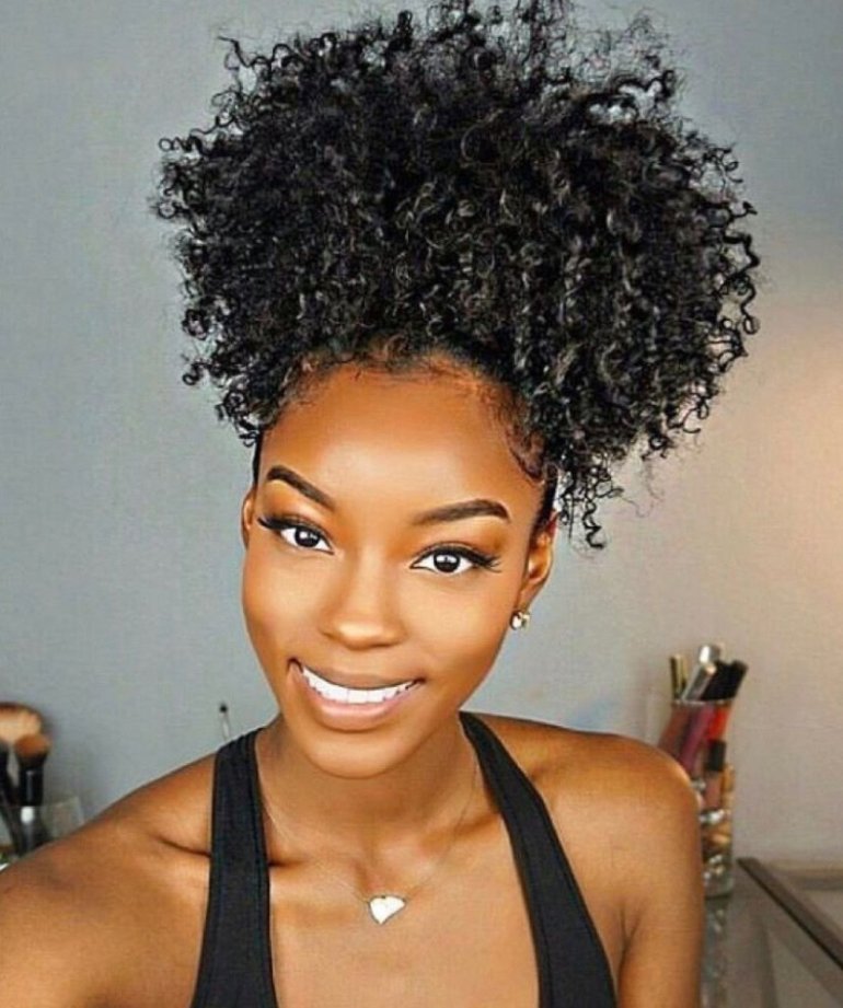 Афро кудри в пучке.