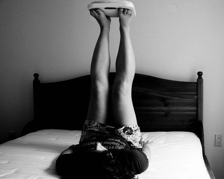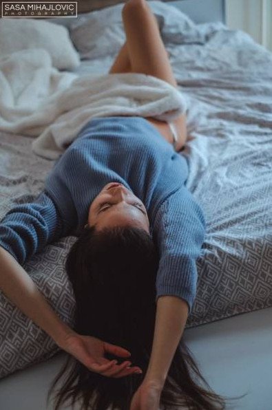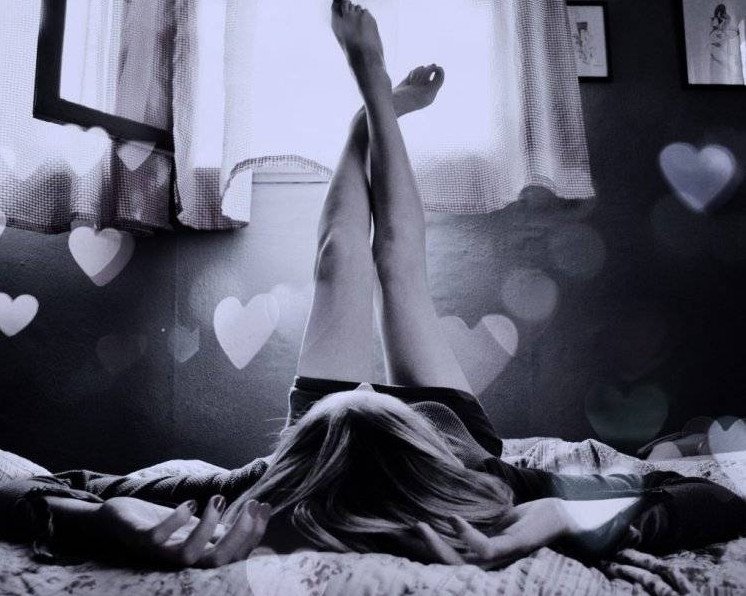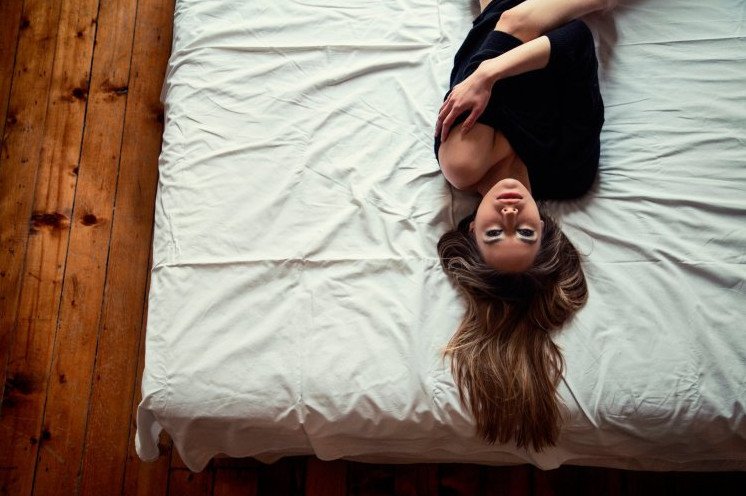 Одинокая девушка в постели.