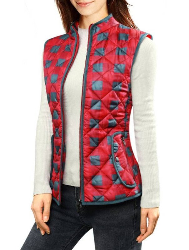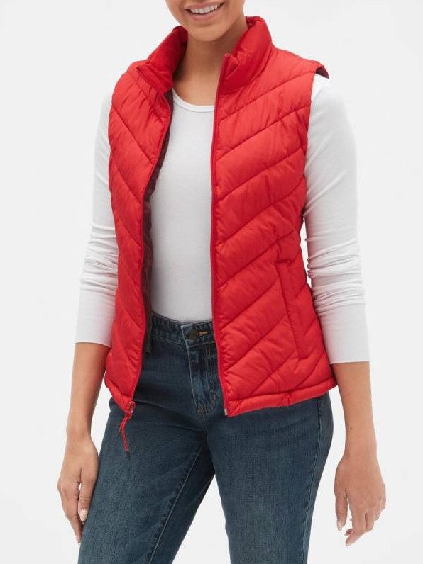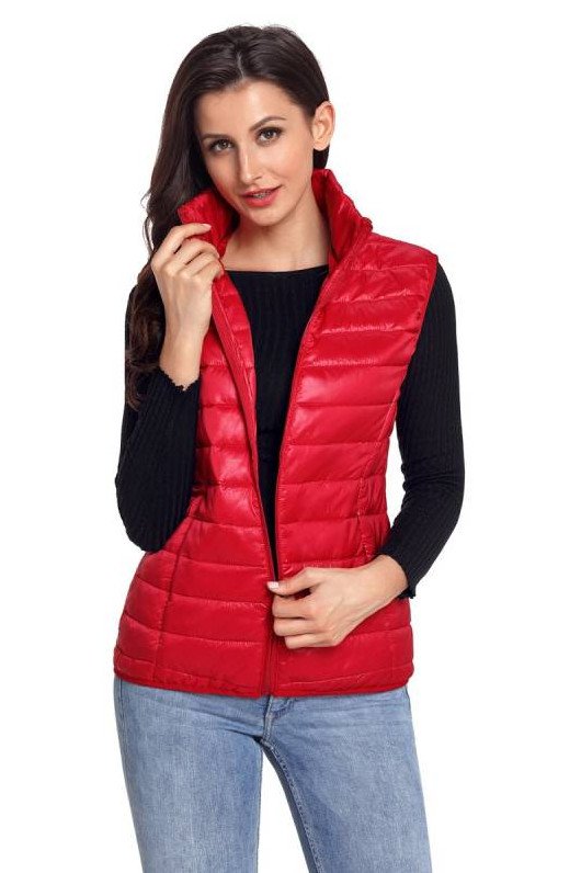 Жилет стеганый дамский очень красный.
