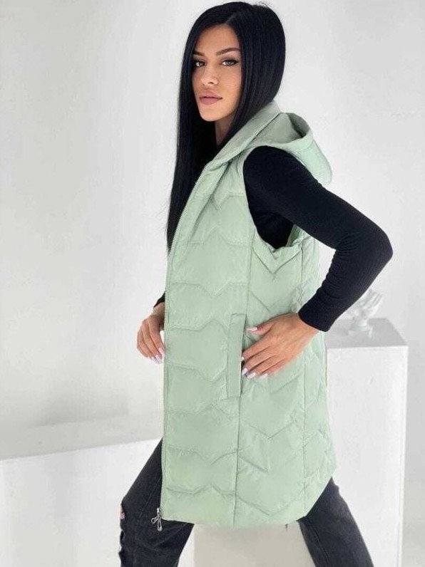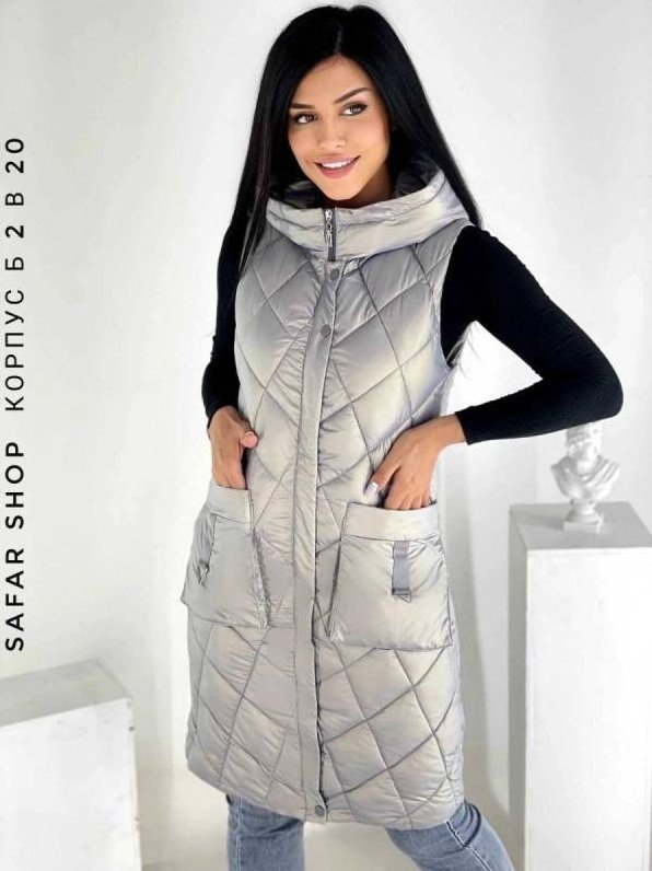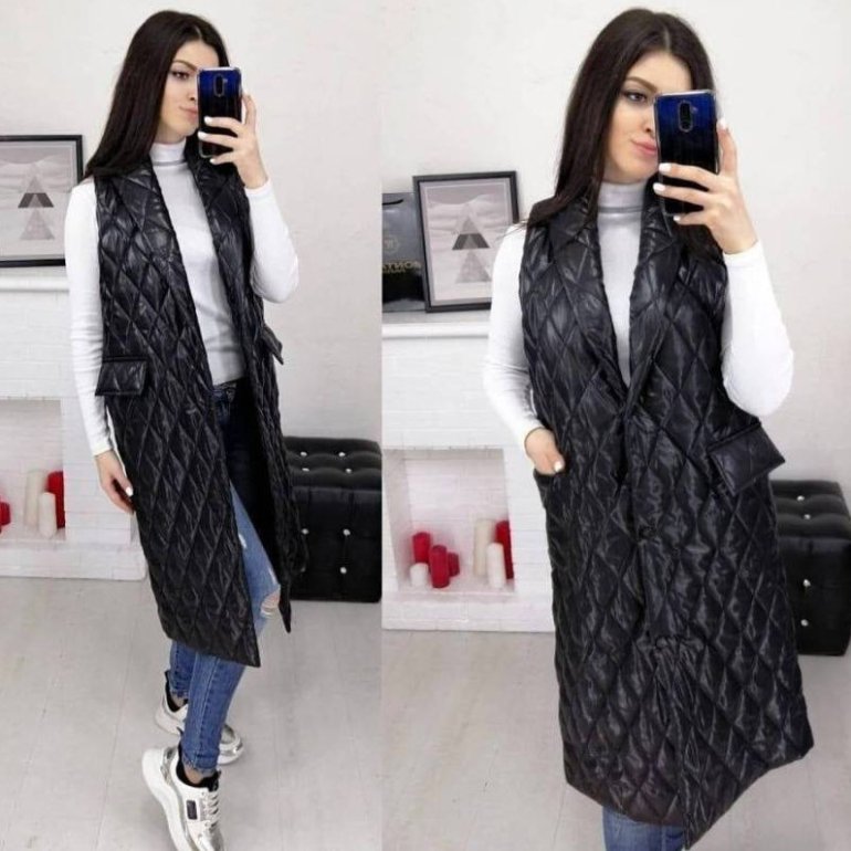 Длиннющий стеганый жилет дамский.