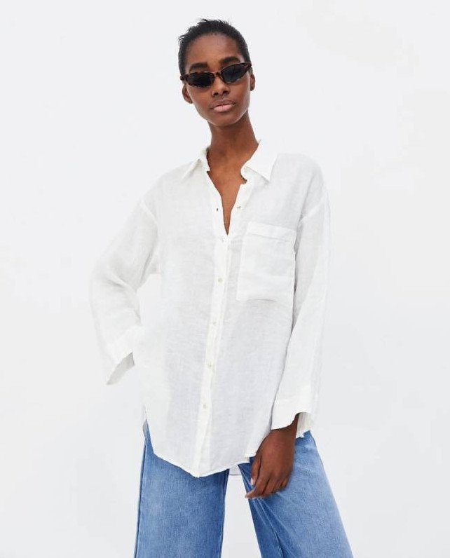 Белоснежная льняная рубаха Zara.