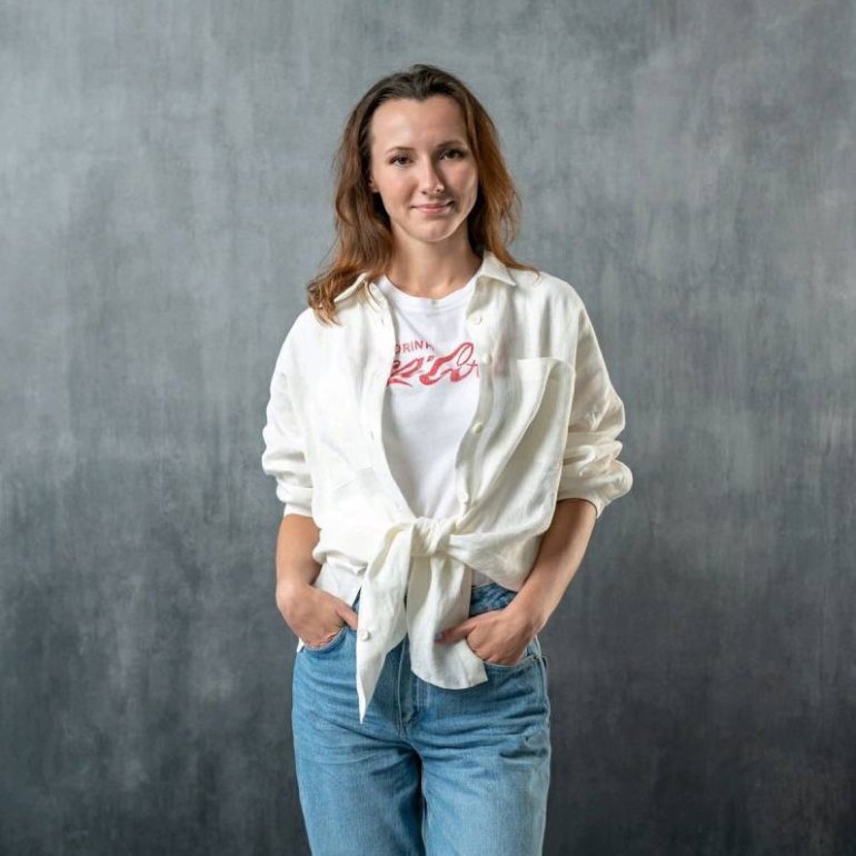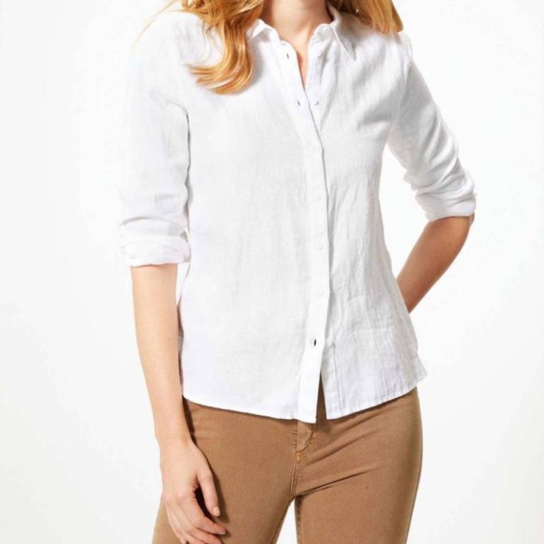 Блондинка в белоснежной рубахе.