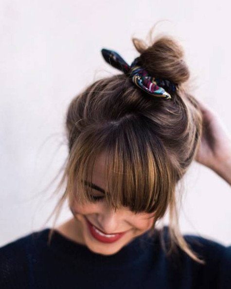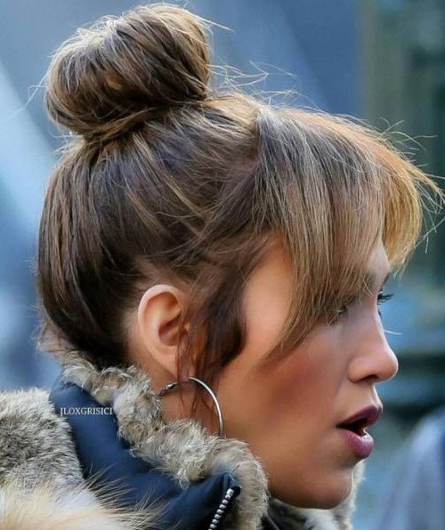 Дженнифер Лопес с челкой и гулькой.