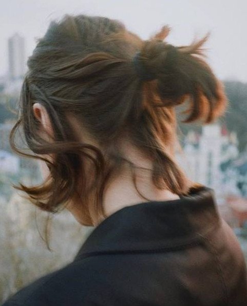 Девушка с пучком со спины.