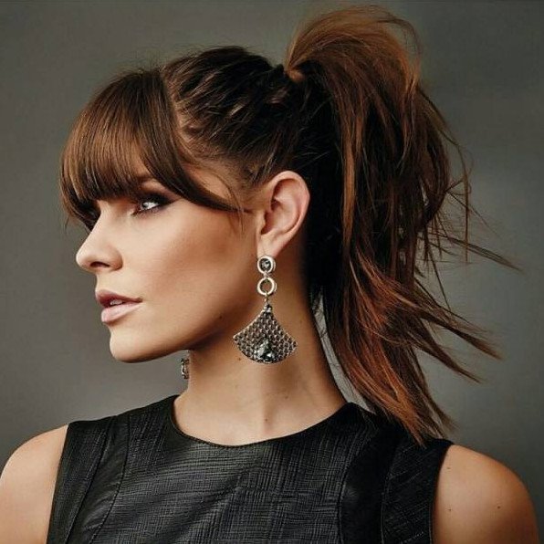 Прическа хвост с челкой.