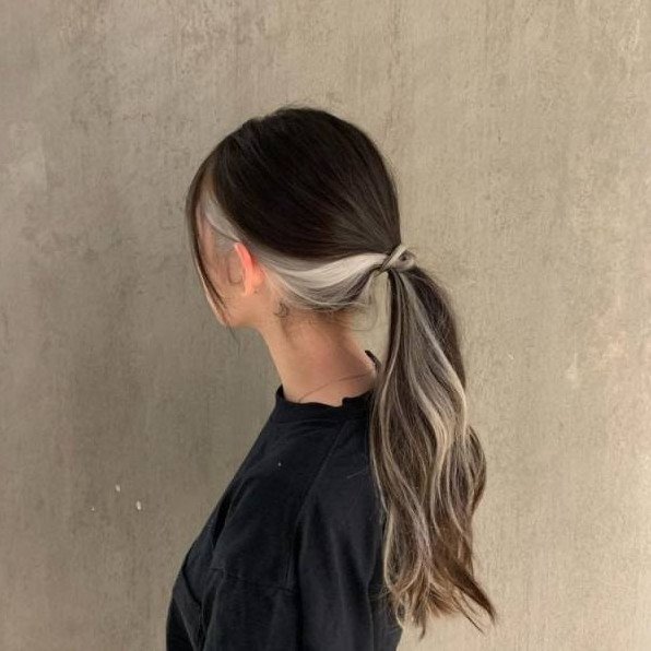 Пепельные волосы в хвосте.