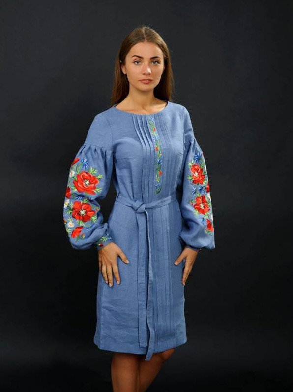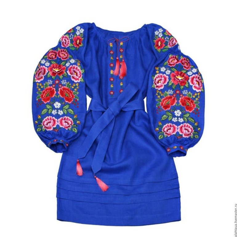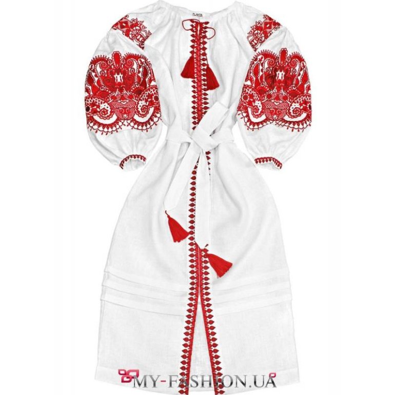 Вышиванка с поясом платье.