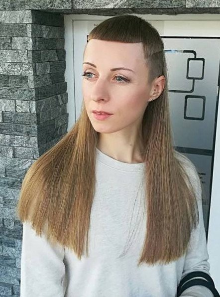 Малая челка с длинющими волосами.