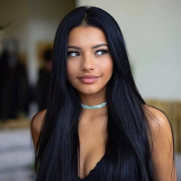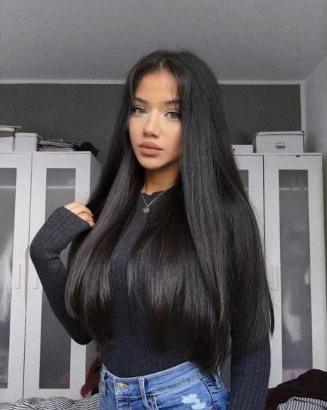 Черные прямые волосы.