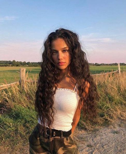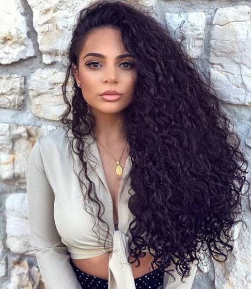Красивая девушка с темными кучерявыми волосами.