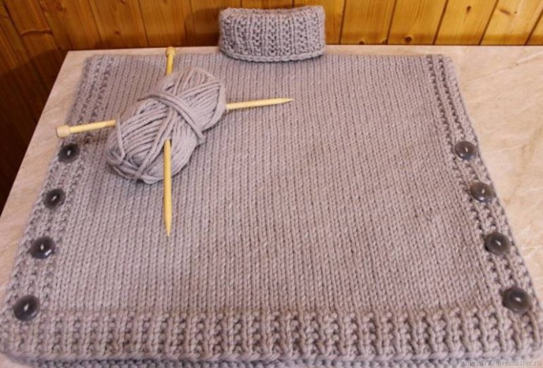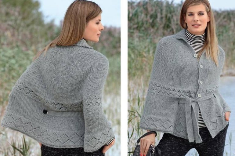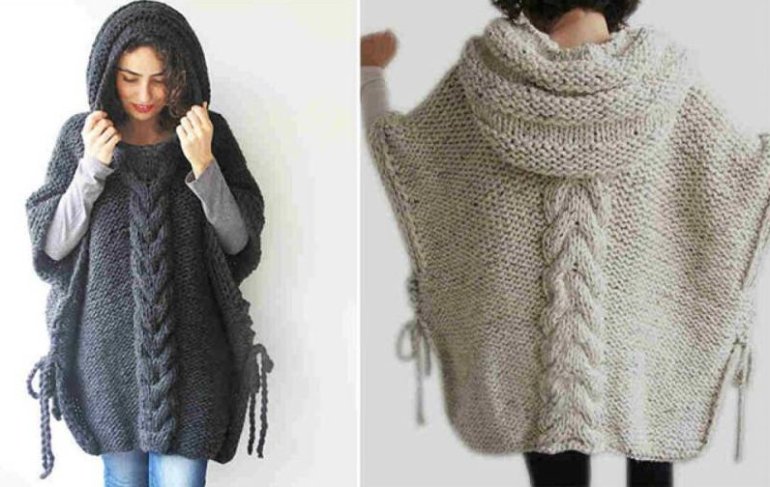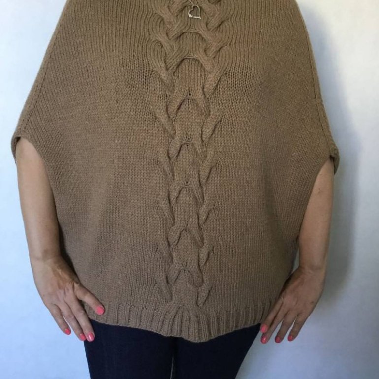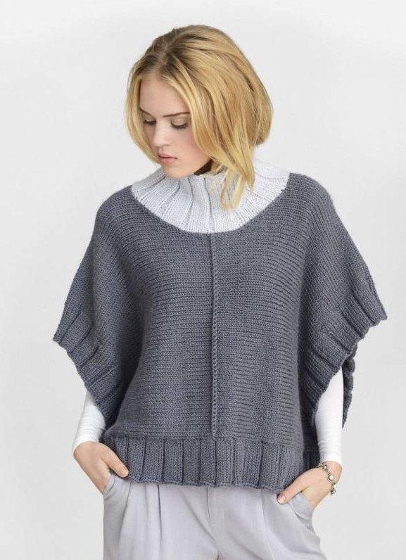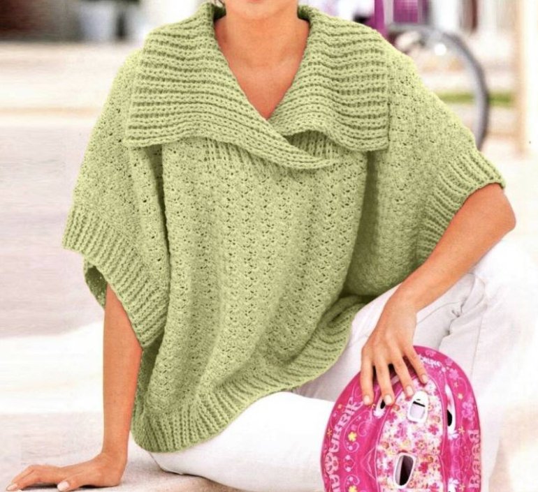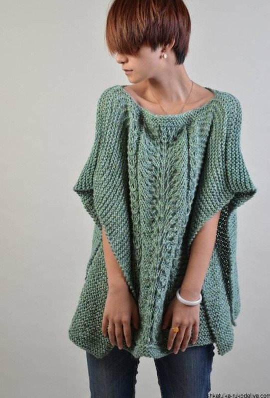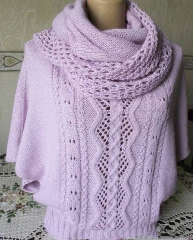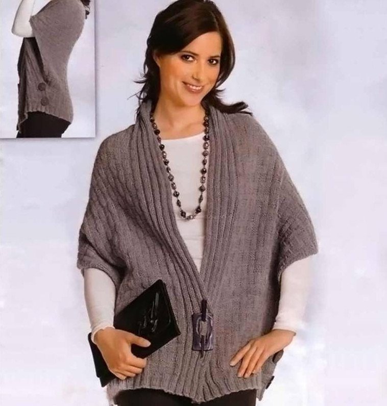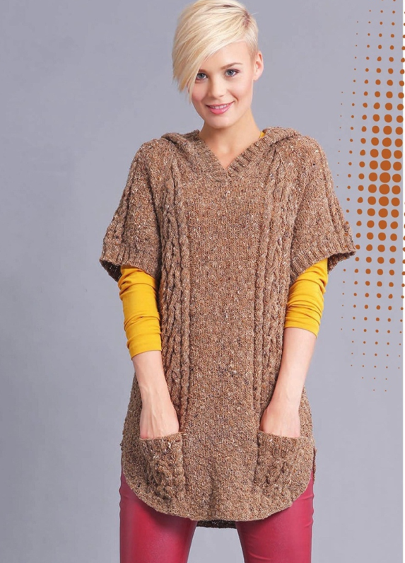 Накидка пончо с капюшоном спицами журнальчик Веста 10 2016.