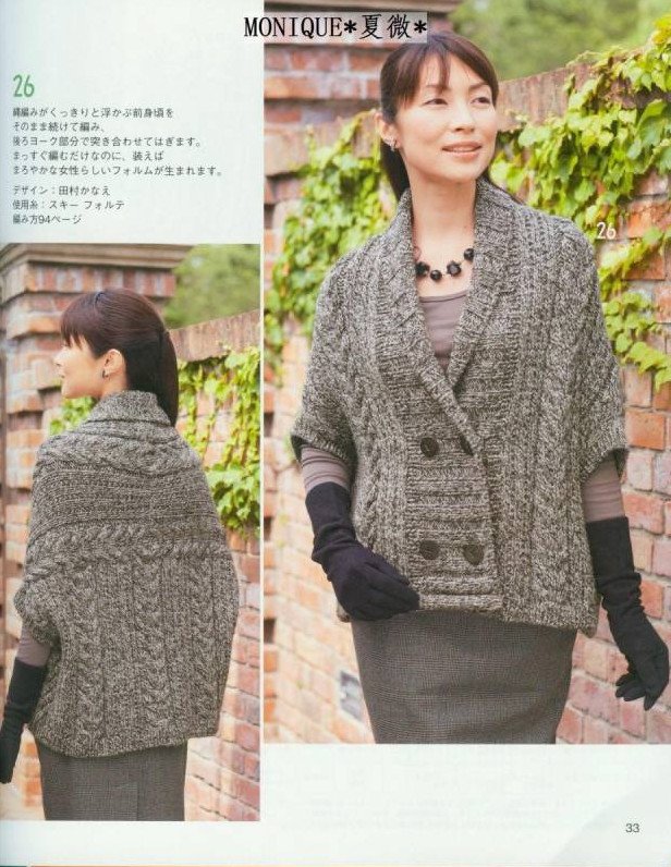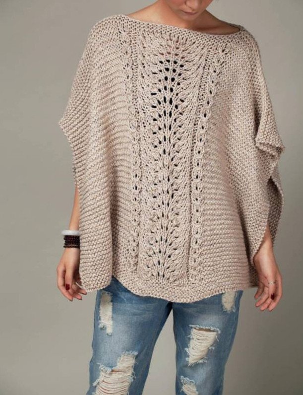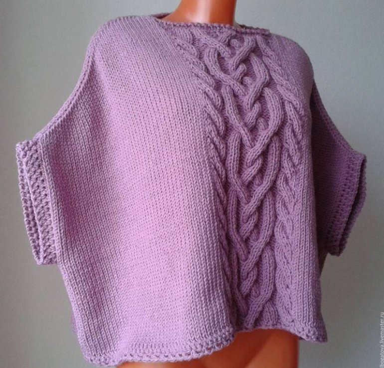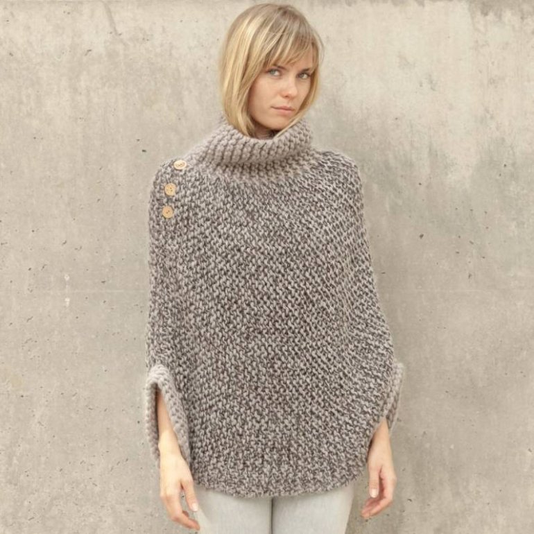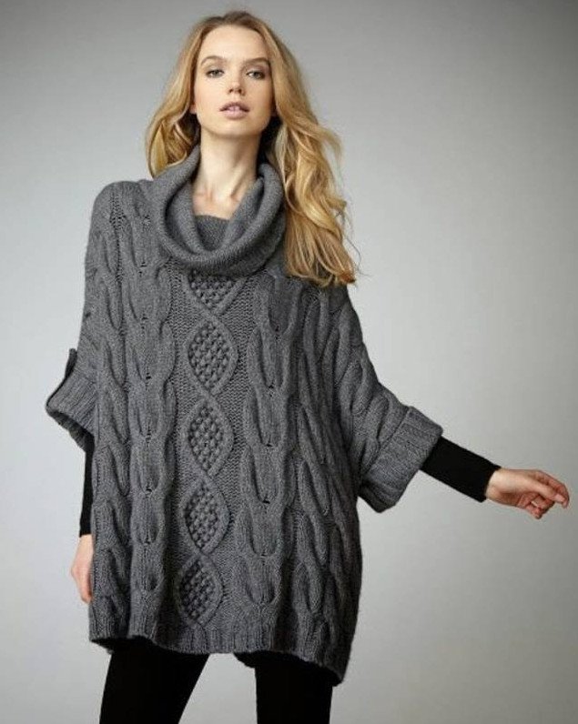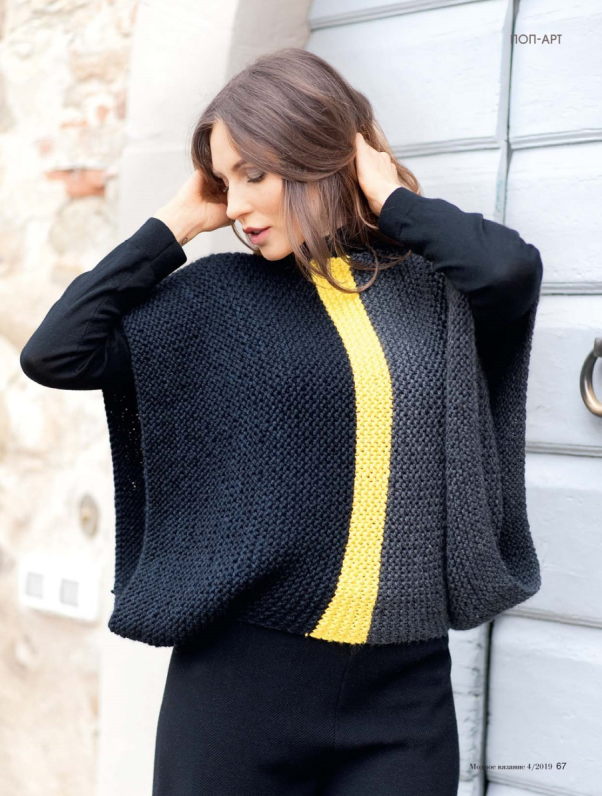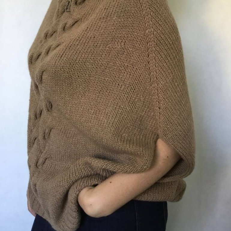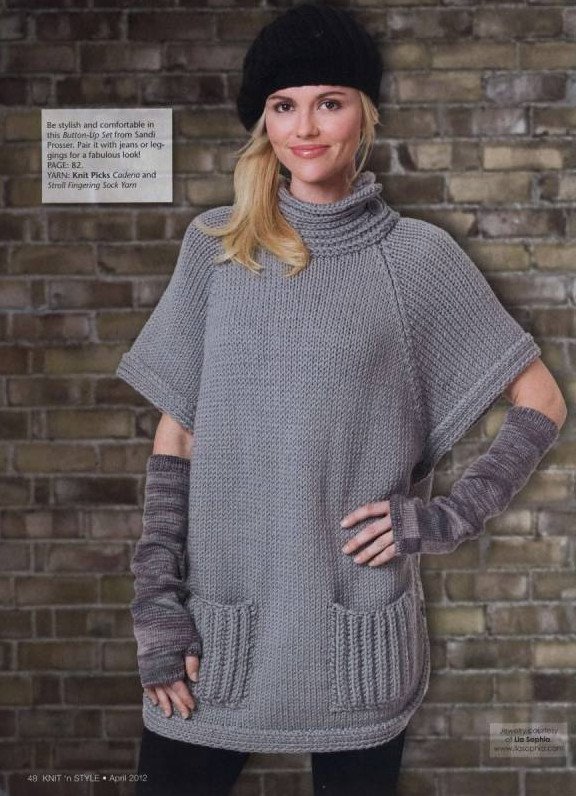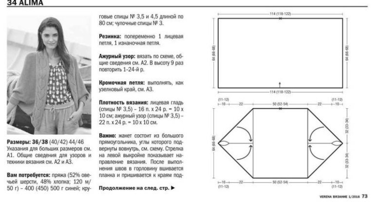 Накидка пончо с капюшоном спицами журнальчик Веста 10 2016.