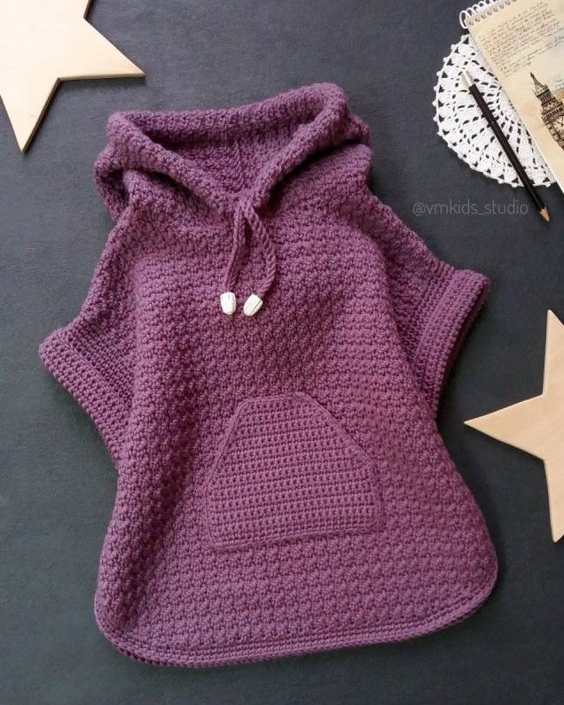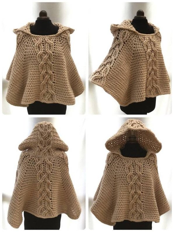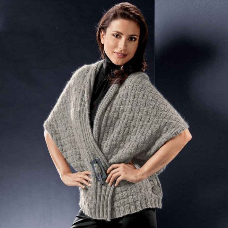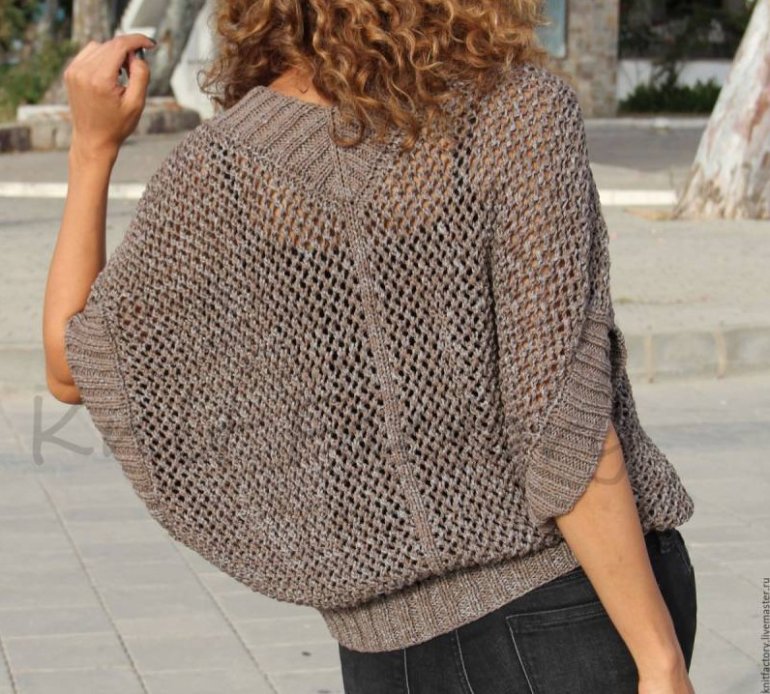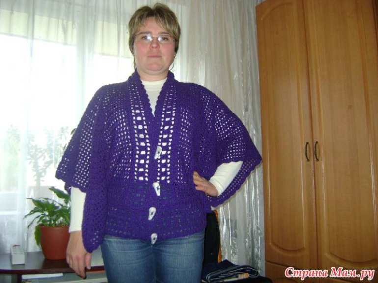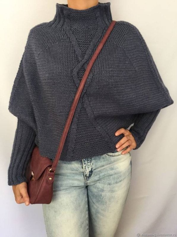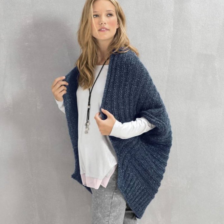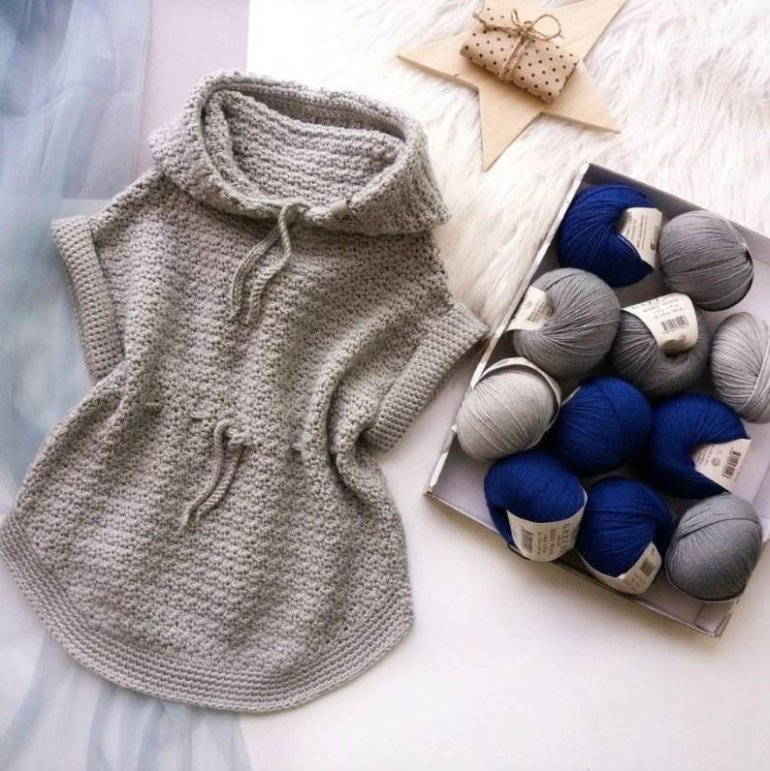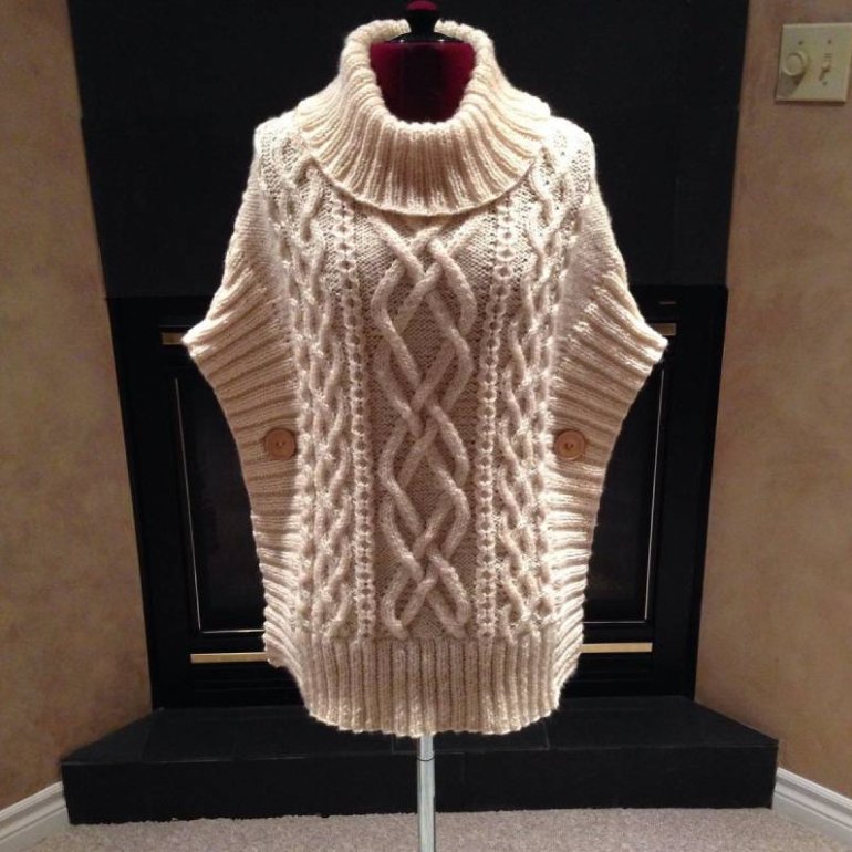 Накидка пончо с капюшоном спицами журнальчик Веста 10 2016.