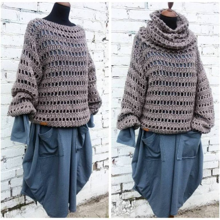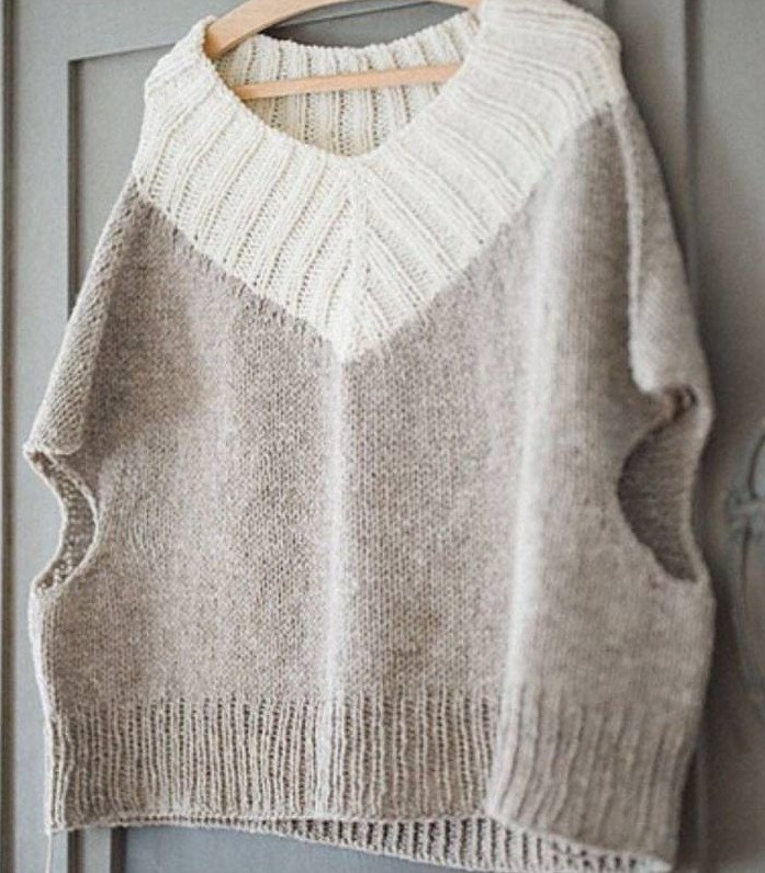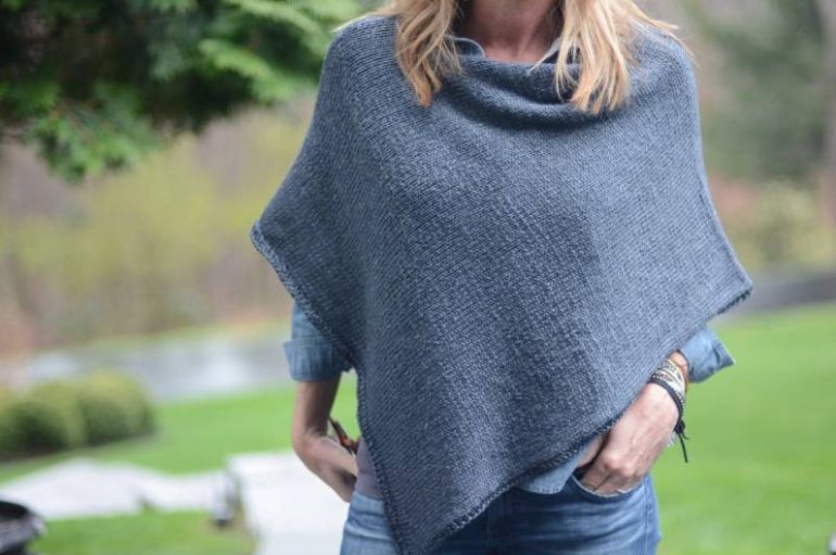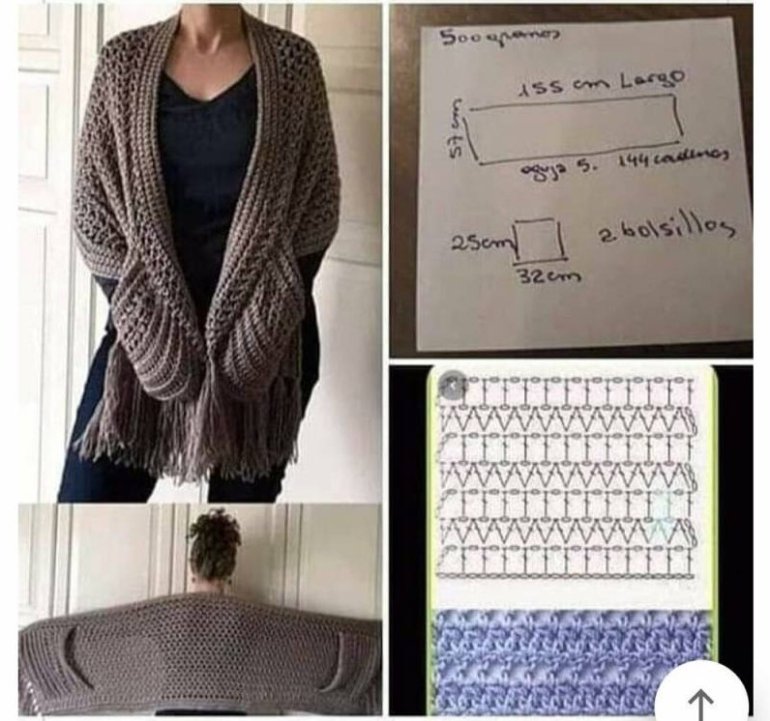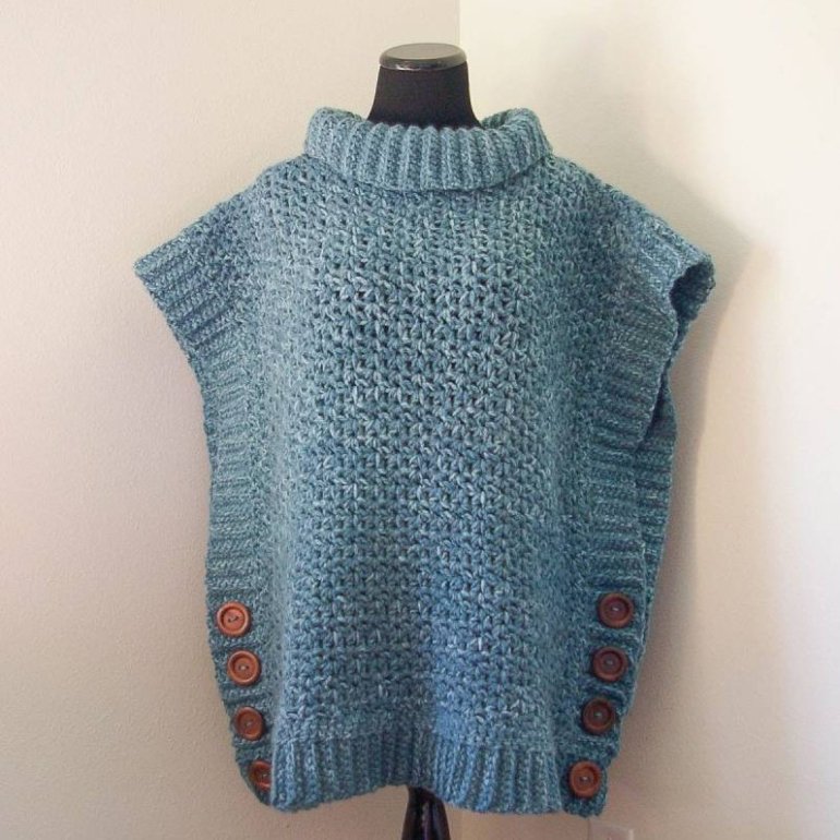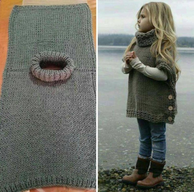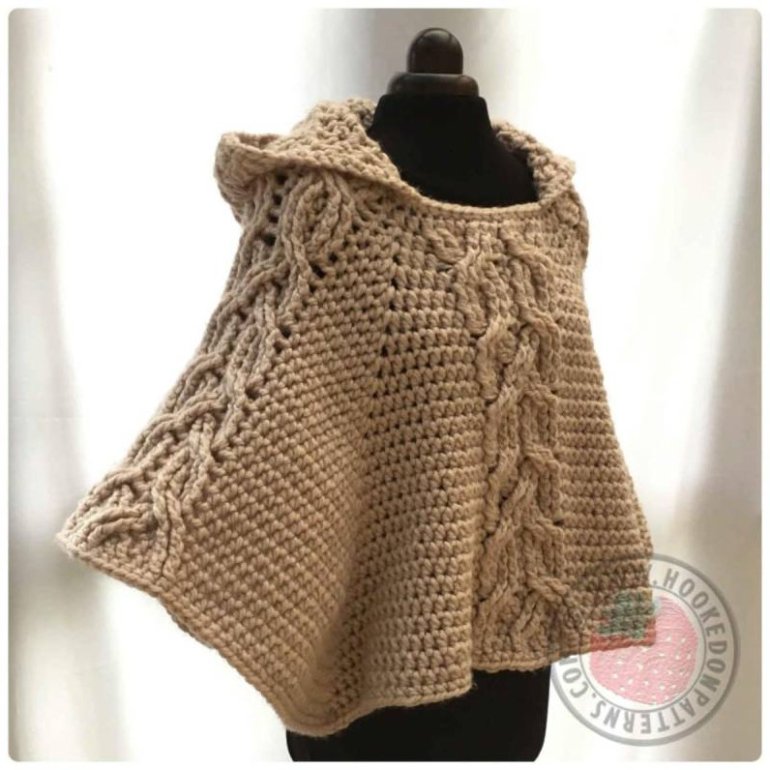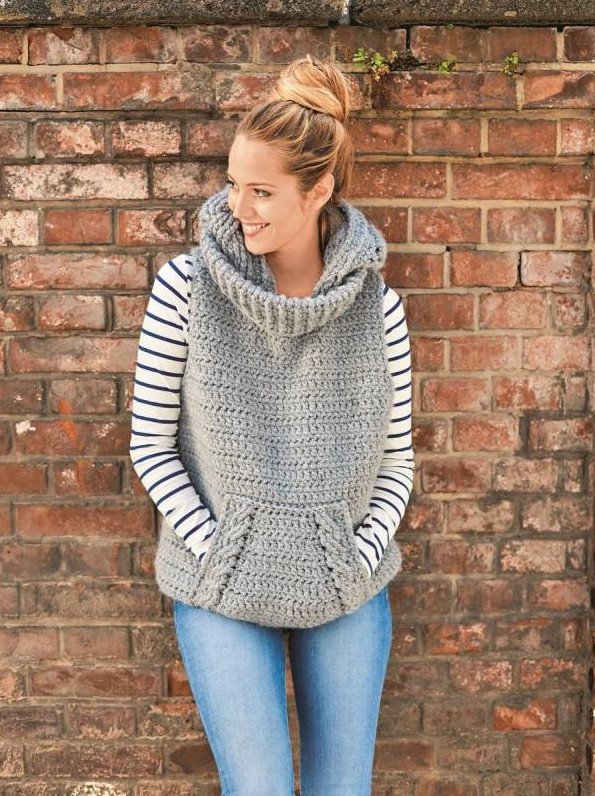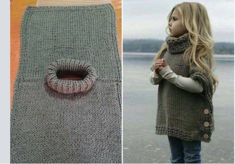 Накидка пончо с капюшоном спицами журнальчик Веста 10 2016.