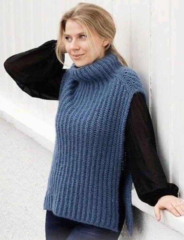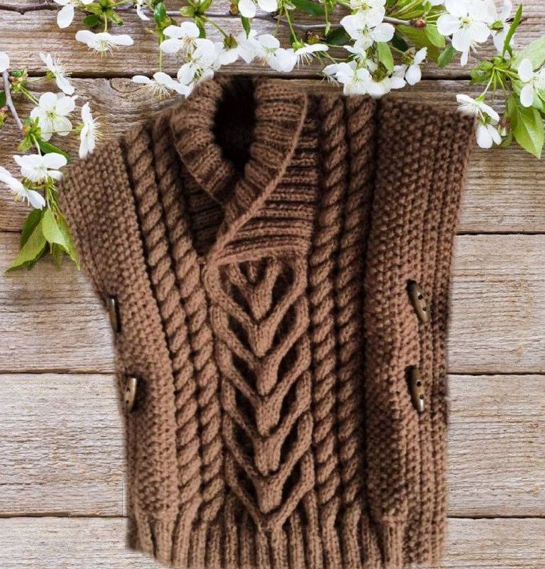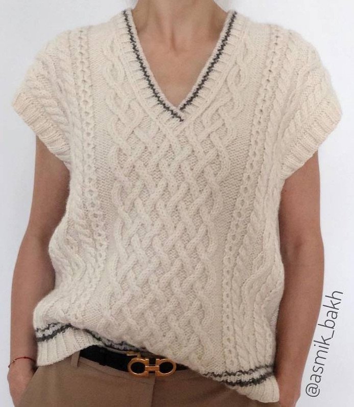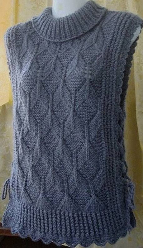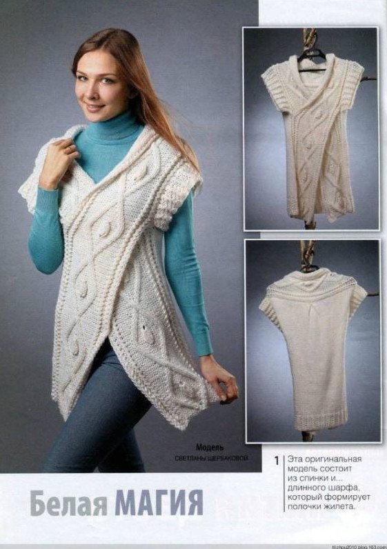Престижные вязаные жилеты 2022 дамские спицами косы.