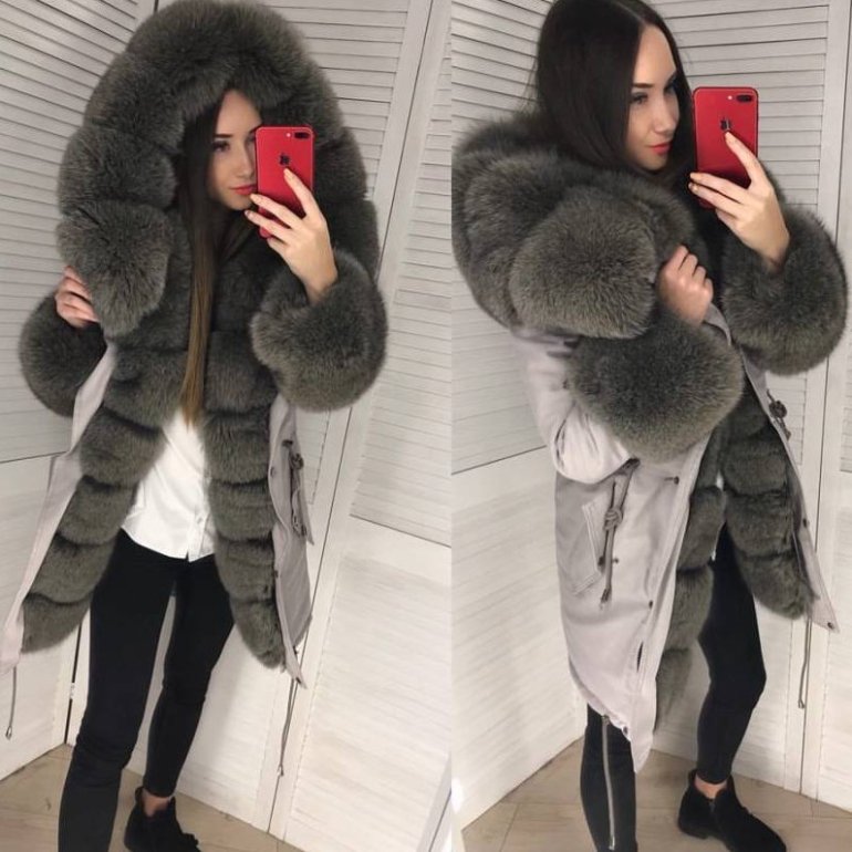 Парка с мехом песца женская.