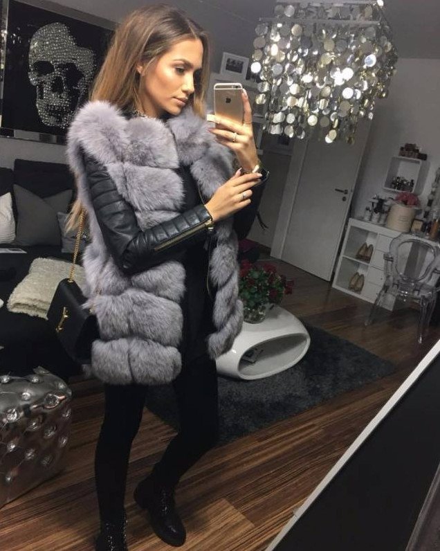 Сероватый песец кожаная куртка.