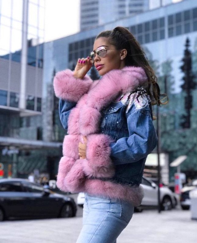 Джинсовая куртка с мехом песца.